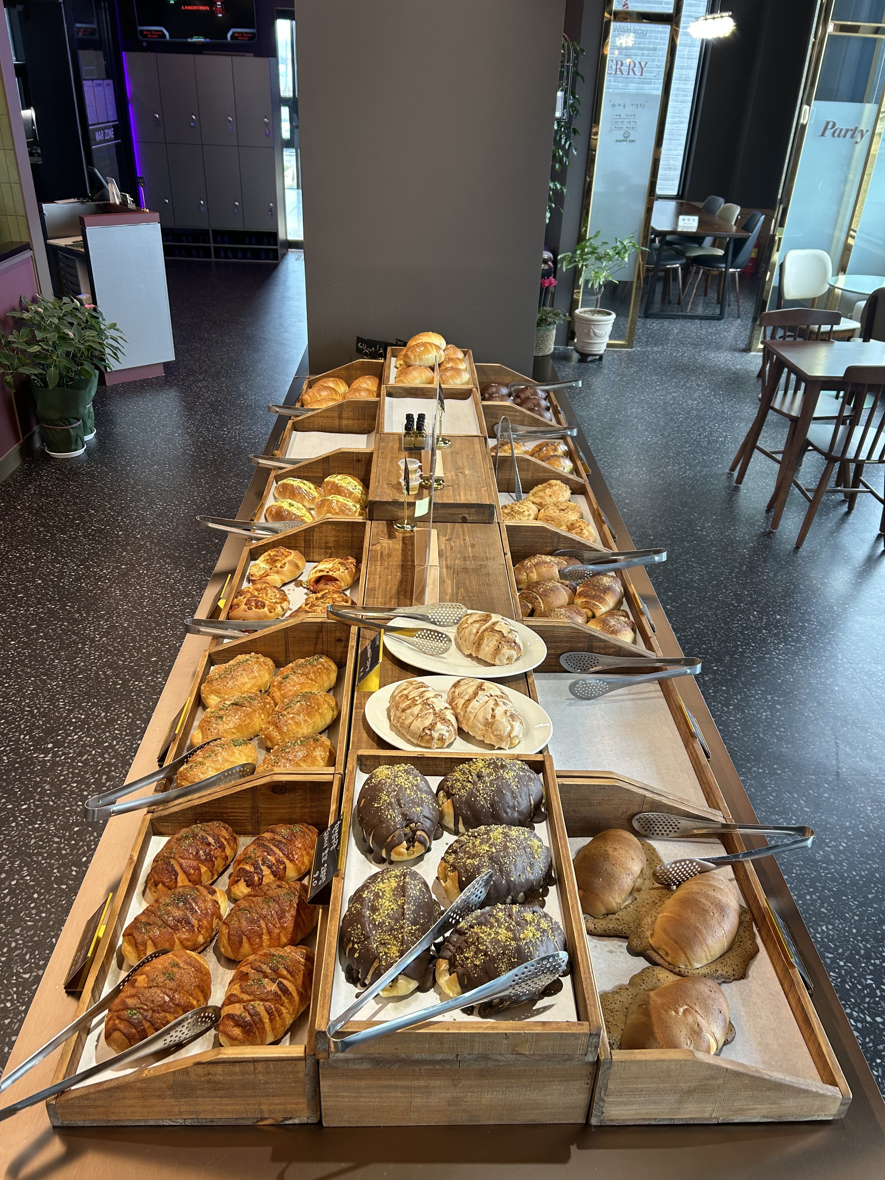 SEONJOO소금빵이 엄청 많고 맛있어보여요 .. 🥹 다 먹고싶은데 꾹 참고 세개만 골랐습니다 .. 매장 엄청 넓고 단체로 오기도 너무 좋아보여요 ! ~ 꼭 와보세용 논밭뷰도 굳 ~..