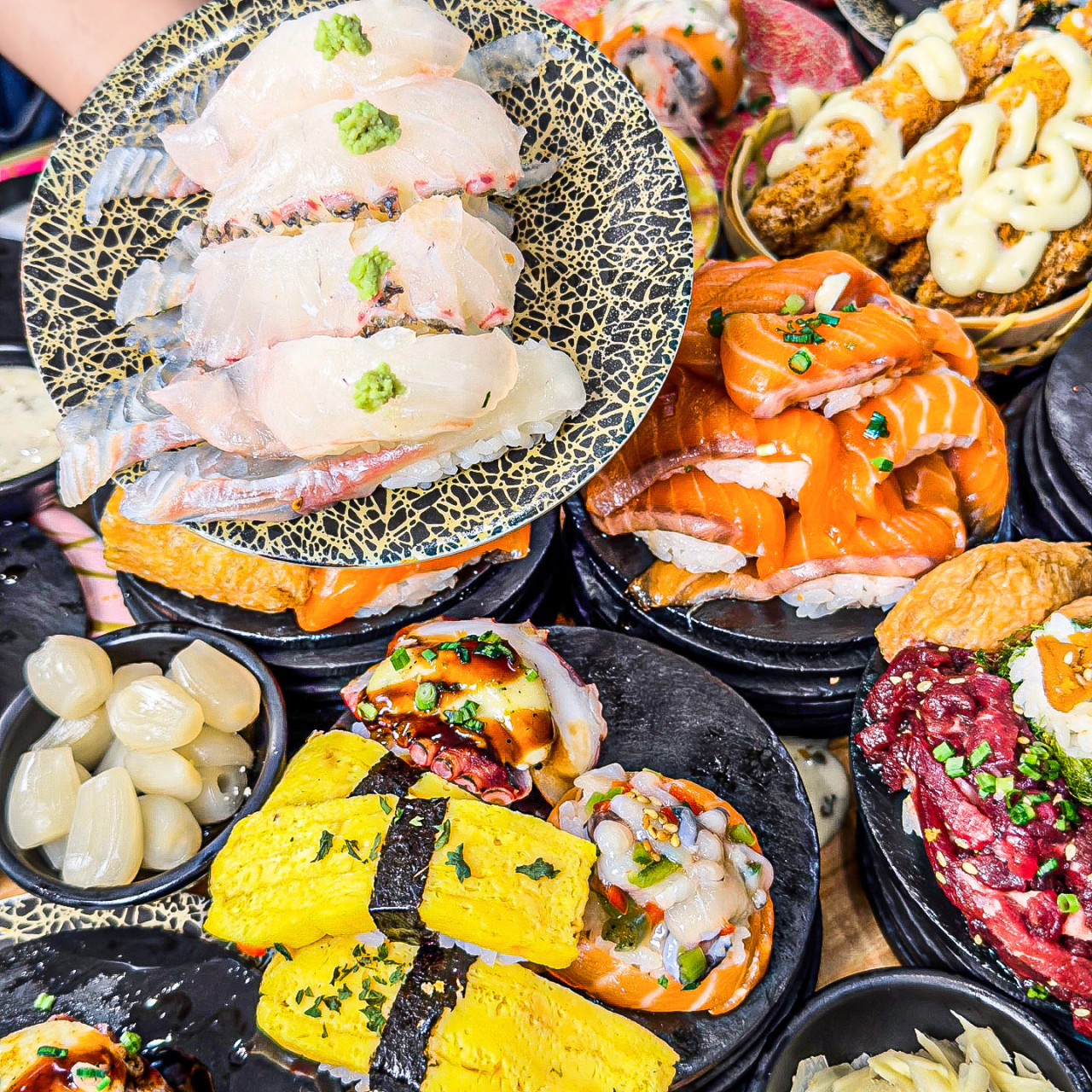 강내루미지인 추천으로 방문했는데 생각보다 웨이팅이 빨리 끝났어요 모든 초밥접시가 1990원인데 가격이 전혀 비싸다고 생각이안들어요 퀄리티가 너무 좋아서 5접시 먹는데 배불러요 맛잇어서 더 시켜먹는중이에요... 다음에 또 오고 싶어요!!