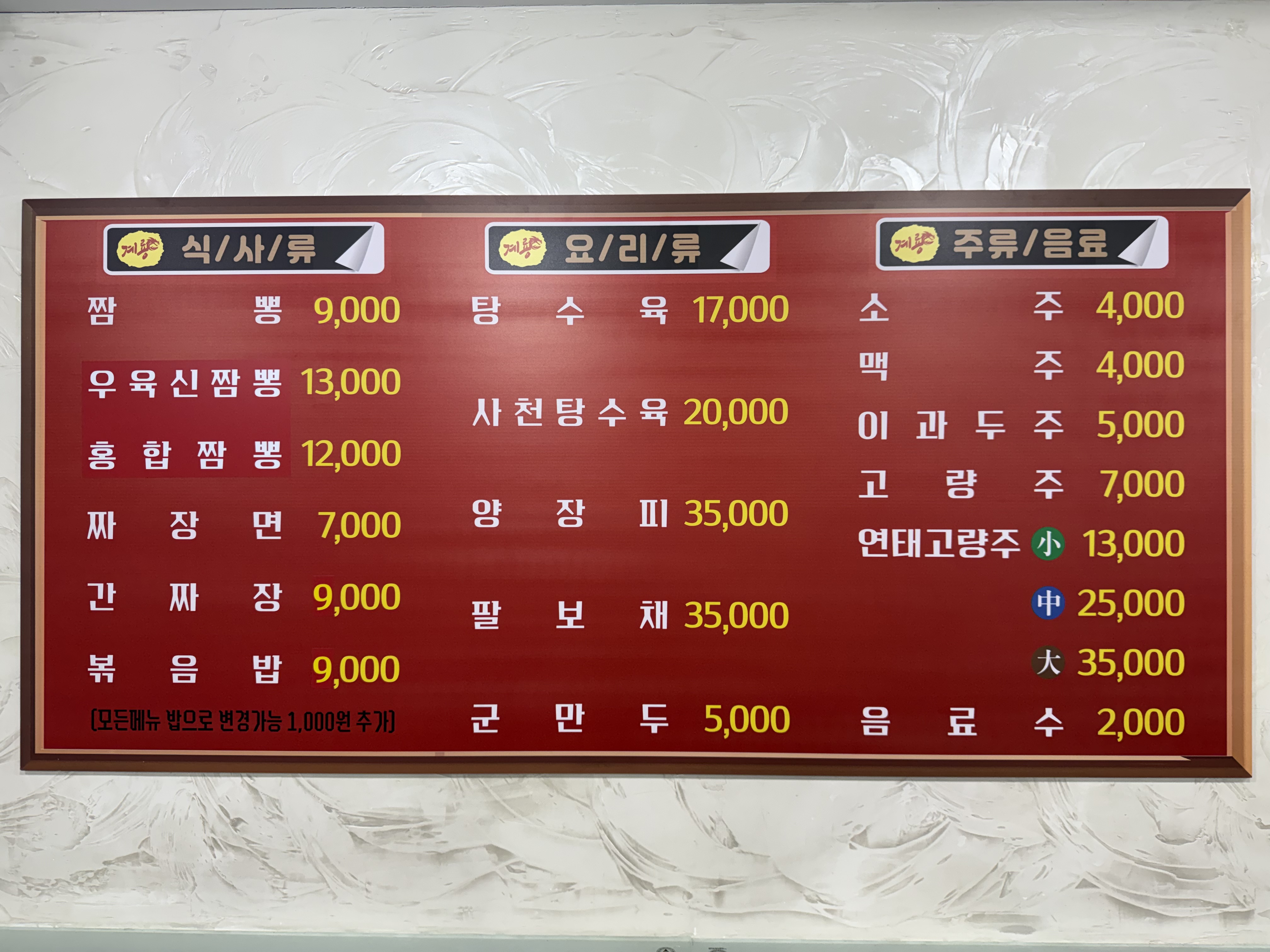 - 짬뽕 9,000원