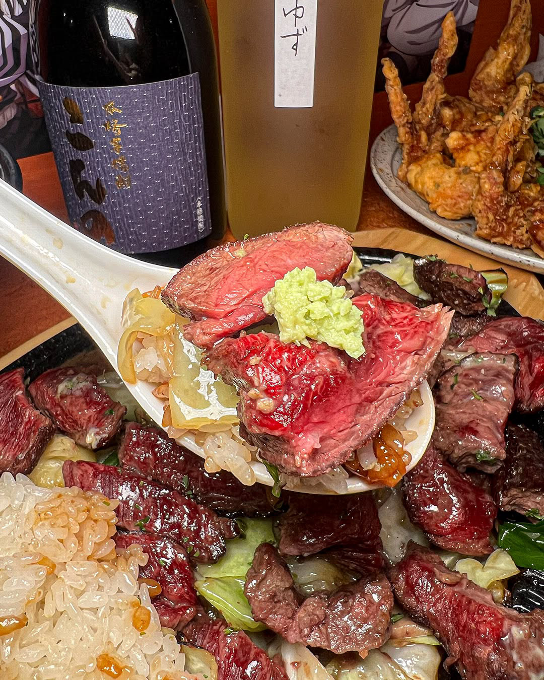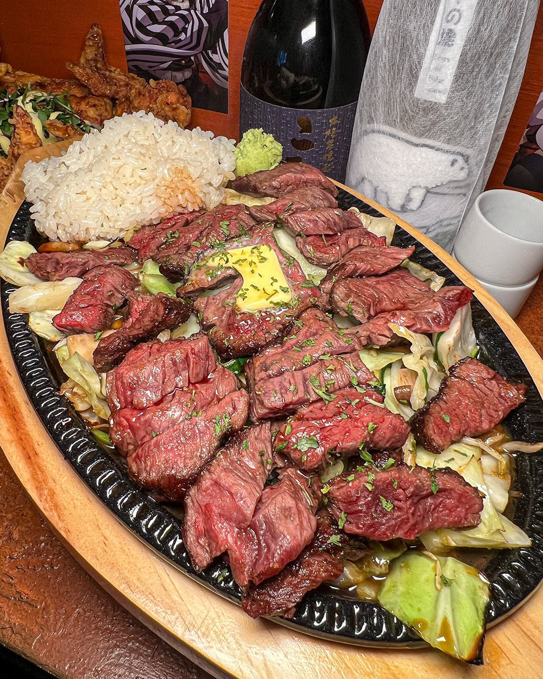 이둡둡우스테이크 너무 궁금해서 시켜봤는데 맛있어요! 한국식으로 맛있게 잘 만드신 것 같아요 ㅎㅎ👏🏼👏🏼 단짠조합!! 와사비에 얹어먹으니 꿀맛입니다 😋😋밥도둑!!!! 그리고 얼그레이 하이볼 너무 맛있어여 ㅠㅠ
