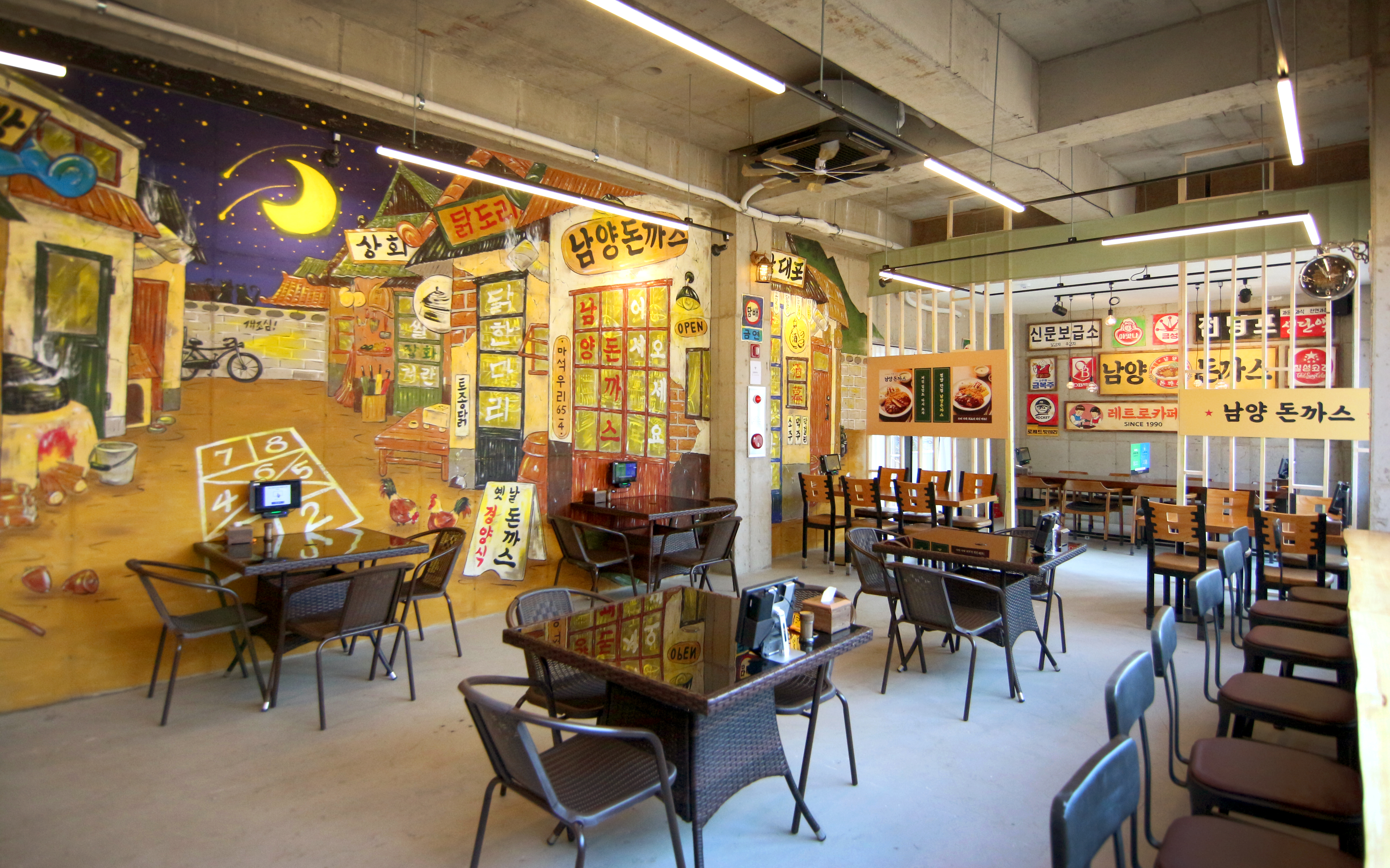 라임84새로생긴 남양돈까스 방문후기 같은 건물 2,3층이 즐겨찾는 솥뚜껑 닭볶음탕 맛집인데 1층에 돈까스집이 생겨서 방문했어요. 우선 레트로 감성 물씬나는 인테리어가 넘 이쁘구요 산뷰라 탁트인 매장 느낌이 너무 좋더라구요. 고기를 자르기전에 찍었어야하는데 빨리 먹고싶은 맘에... 돈까스집 웬만한곳은 다 다녀봤는데 이집만의 특색을 꼽으라면 씹을때 식감이 바삭하면서도 좀 쫀득한 느낌? 소스도 넘 진하지않고 뭔가 상콤해서 계속 찍어먹게 되더라구요. 그리구 매운맛도 하나 주문했는데 매운거 즐기시는 분들 꼭 드셔보세요~ 불닭정도의 매콤한 맛이예요ㅎ 맛있게 잘먹었습니다~