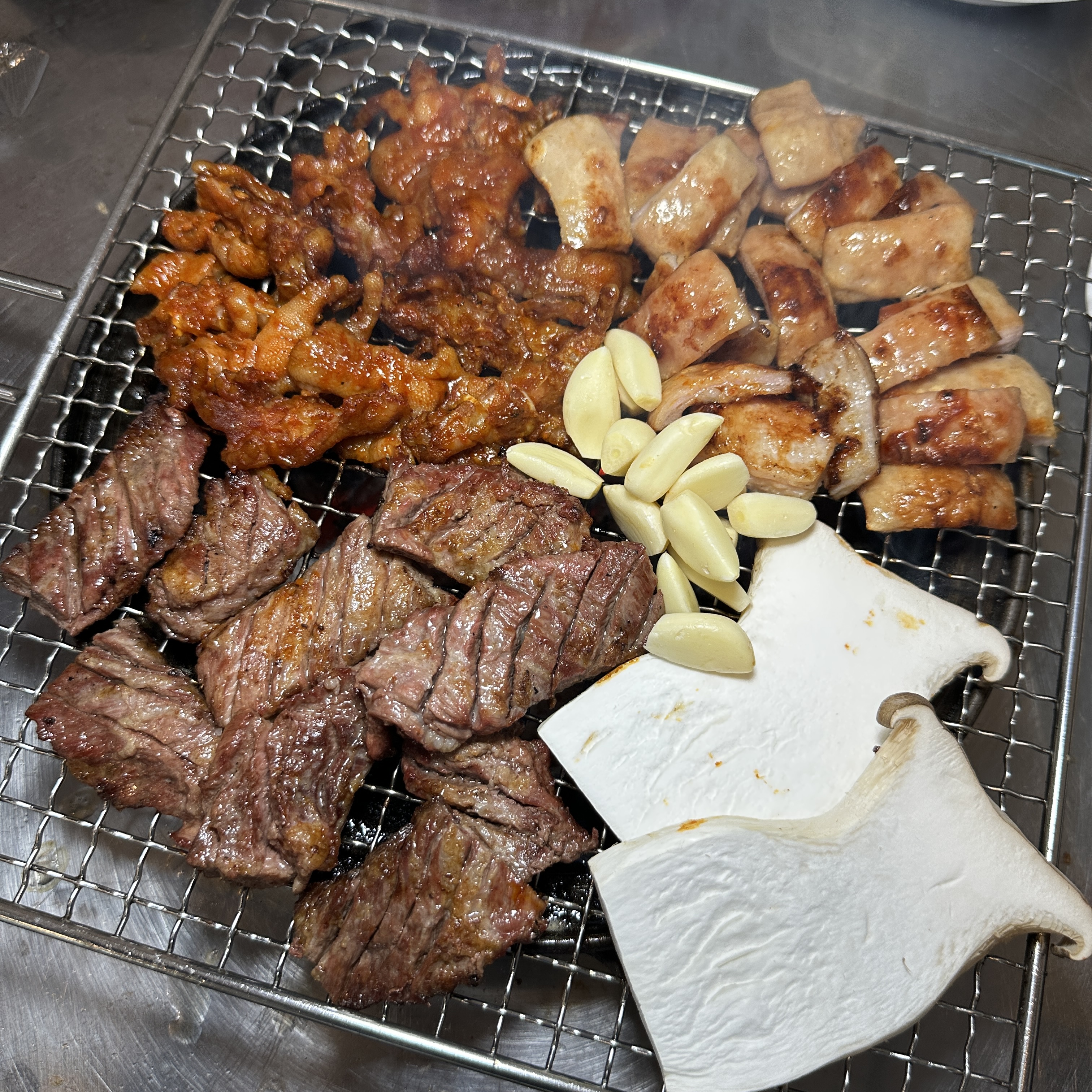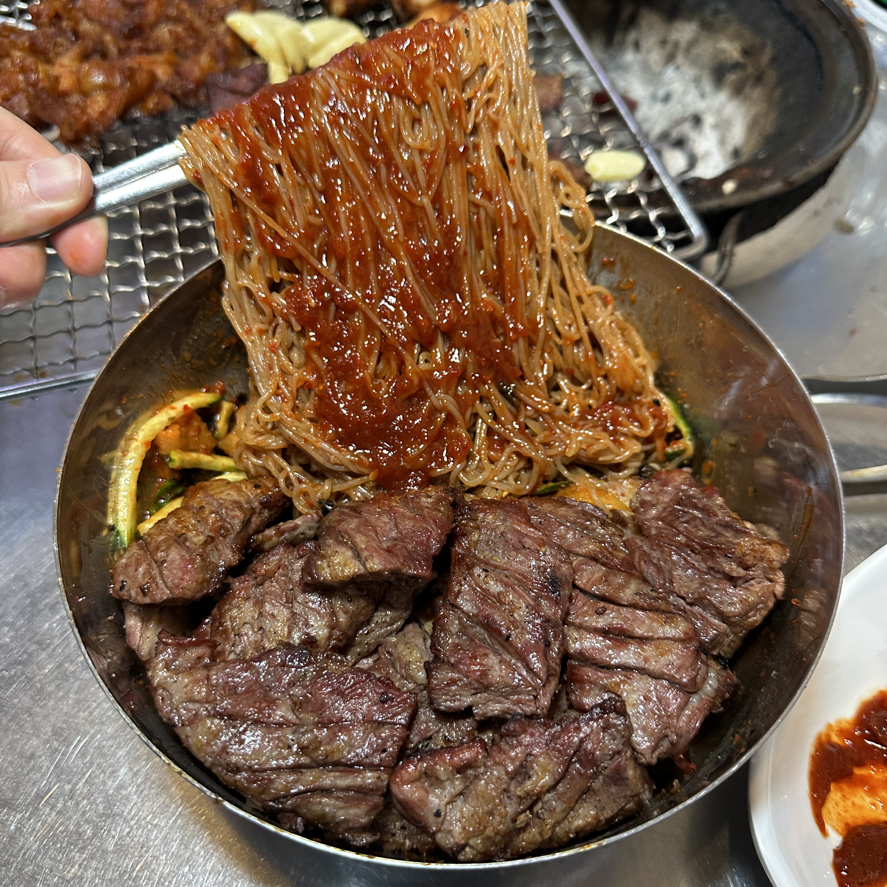 까용21솔송이 너무 맛있져🤤 숯불에 구워 먹으니까 불향도 잘 나고 고기도 질기지 않고 부드러운 편이었어요 ! 닭발도 별미였고, 비빔 냉면도 상큼해서 고기랑 같이 먹기 좋았어요 😊 전체적으로 가성비 괜찮고 직원분들도 친절해서 기분 좋게 식사하고 왔습니다 ! 또 갈꺼양👏🏻