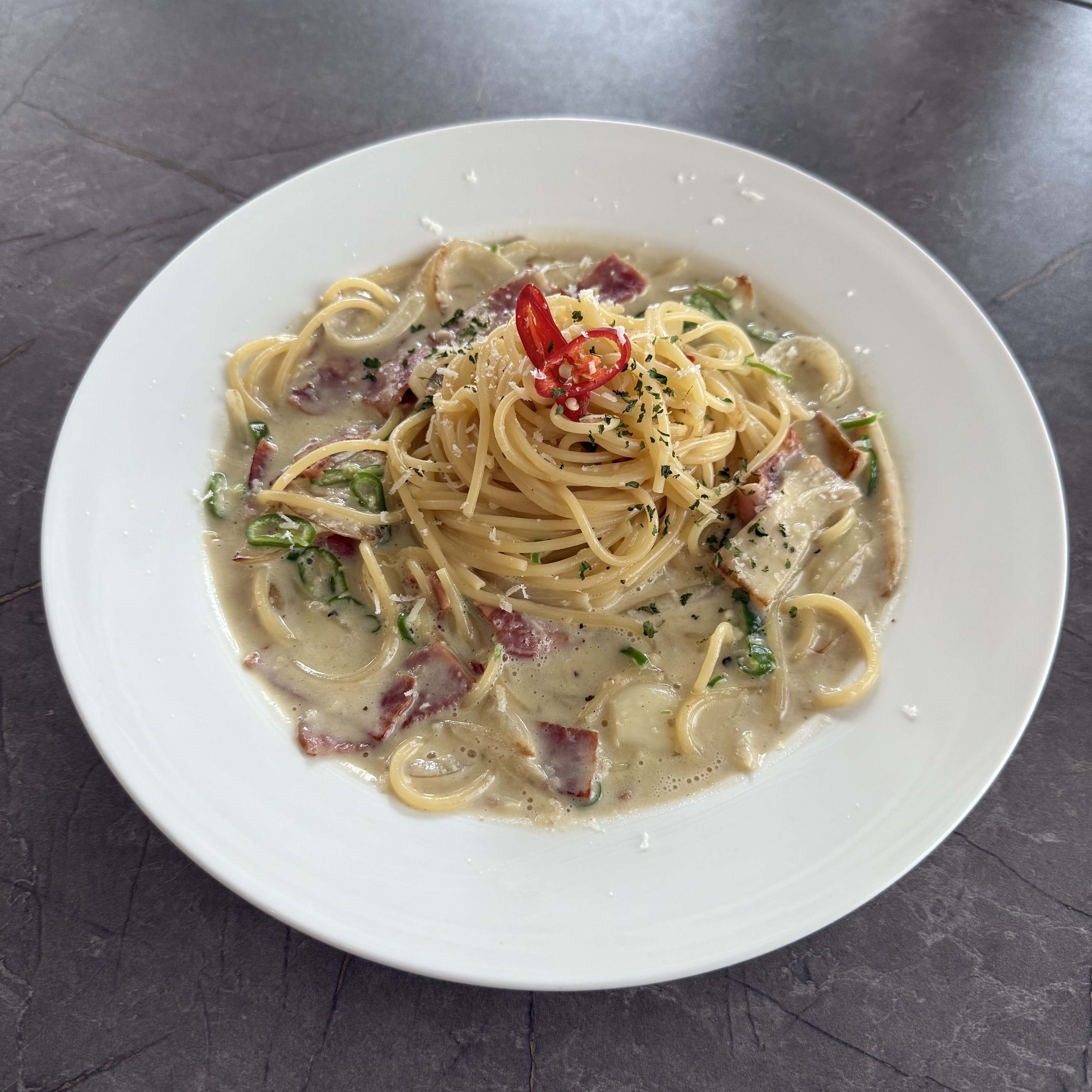 - 베이컨 청양크림 파스타 12,000원
