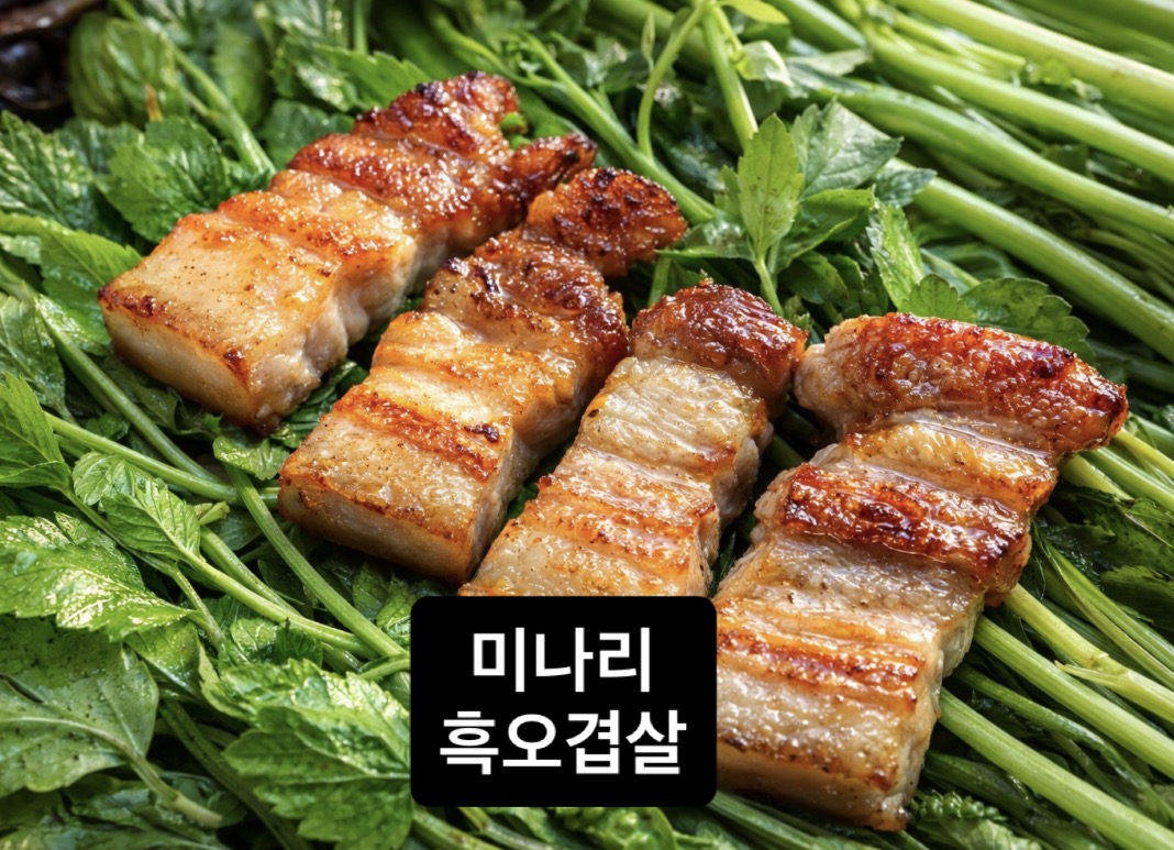 여실화차로 지나가다 미나리랑 함께 구워 먹는 흑돼지 오겹살이 보이길래 바로 들어왔어요. 오겹살이랑 껍데기 둘 다 쫀득하고 고소해서 야채쌈이랑 같이 싸 먹으니 진짜 맛있더라구요. 주차도 편리하고, 무엇보다 매장 음악 분위기가 좋아서 더 기분 좋게 식사했어요:) 감사합니다