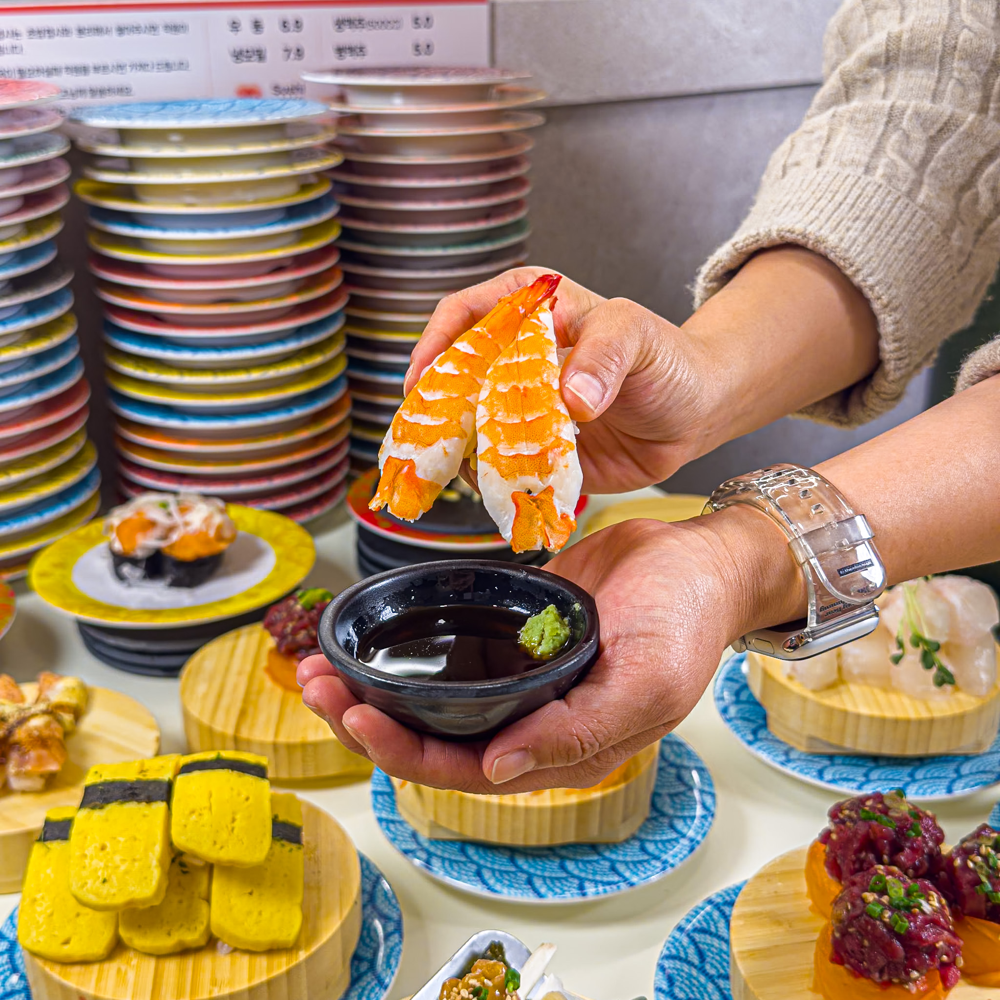 Kyuuli가성비가 좋은 회전초밥. 만원으로도 5가지의 초밥을 즐길 수 있어요. 종류도 다양해서 선택의 폭도 넓다는거~ 다만 개인적으로 단짠단짠이 좀 강하고 초밥의 밥양이 조금 많아요. 그래서 나중에 물을 좀 많이 찾게된다는거~ 그래도 가격대비 맛과 양 모두 굿~ 특히나 육회초밥은 든든한 한끼가 될 수 있어요.