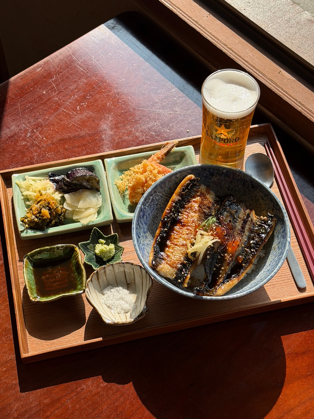 탕구르르히츠마부시(장어덮밥)를 먹었는데 장어가 정말 맛있었습니다. 장어가 두툼하고 촉촉해서 비린 맛 없이 담백했고, 양념도 너무 세지 않아 장어 본연의 맛이 잘 느껴졌어요. 밥과 같이 먹어도 좋았고, 마지막에 차를 부어 오차즈케처럼 먹는 방식도 색다르고 맛있었습니다. 전체적으로 재료 신선도도 괜찮고 깔끔하게 식사하기 좋은 분위기였습니다. 장어 좋아하시는 분들이라면 한 번쯤 방문해볼 만한 곳 같아요!
