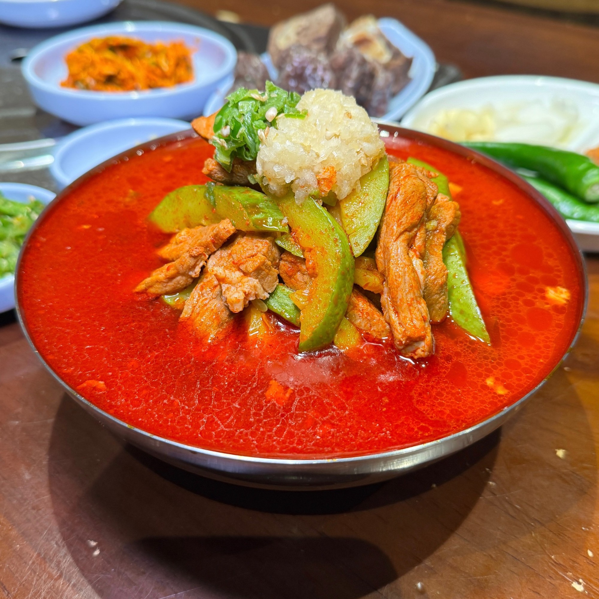 페리에39전부안에 당면도 들어있어서 국수가 없어도 면이 있어서 좋았구요 순대랑 내장도 계석 삶아서 수시로 먹을수 있어서 한잔하기도 너무 괜찮아요 얼큰애호박돼지국밥 기름이 좀 많긴 했는데 맛있게 먹었구요 직화항정도 불맛나고 맛있었어요