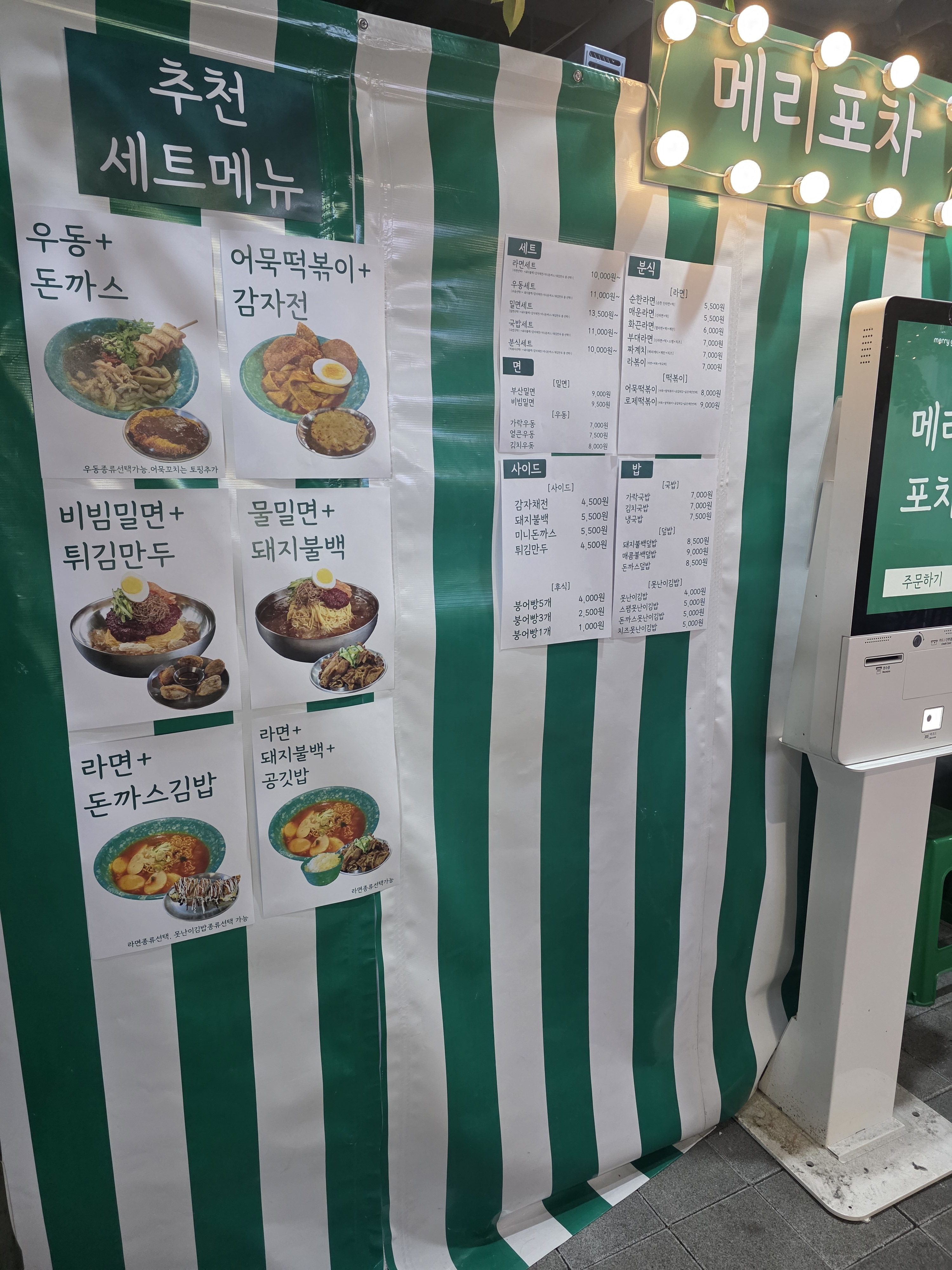 쑤쑤의일상메리그라운드 안에 있는 메리포차에 다녀왔어요. 내부가 너무 예쁘게 꾸며진 식당가라 구경하는 재미가 있고 분위기도 좋았습니다. 우동은 국물이 진하고 따끈해서 좋았고 부산밀면은 시원하고 깔끔한 맛이었어요. 미니돈까스는 바삭해서 아이들도 잘 먹고, 스팸못난이김밥도 짭짤해 맛있었습니다. 마무리로 슈크림붕어빵까지 달달하게 먹기 좋은 곳이었어요. 😋