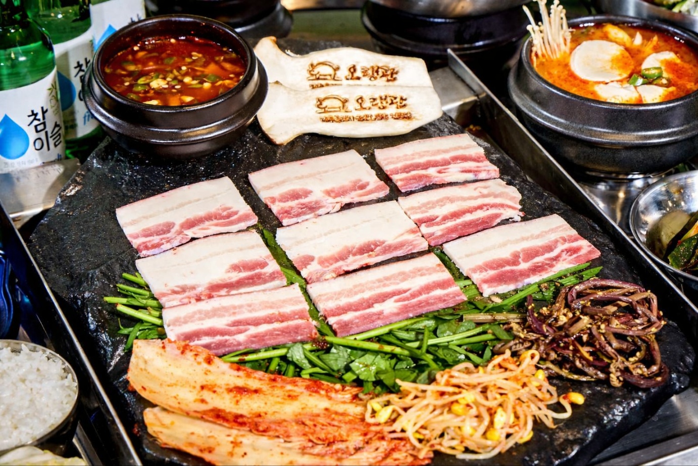 sooooooooooooooooom미나리 삼겹살이 너무 땡겨서 잠실에서 검색해봤더니 오랭관이 뜨더라구용 냉삼도 너무 좋아해서 와봤는데! 친절하시구 고기가 너무 맛있어요! 같이 온 언니두 고기가 너무 맛있다구 첫 입부터 말할정도였습니당 ㅠㅠ 가격도 이 정도면 저렴하구 같이 올려주시는 김치 고사리 콩나물도 다 맛있구요! 그리고 멜젓이 너무 쿰쿰하지도 않고 제 입맛에 너무 맛있었습미당!!!!! 좀 일찍 들어왔는데 들어오고 얼마 안지나서 테이블도 가득 차더라구요 ㅎㅎㅎ 번창하세용!