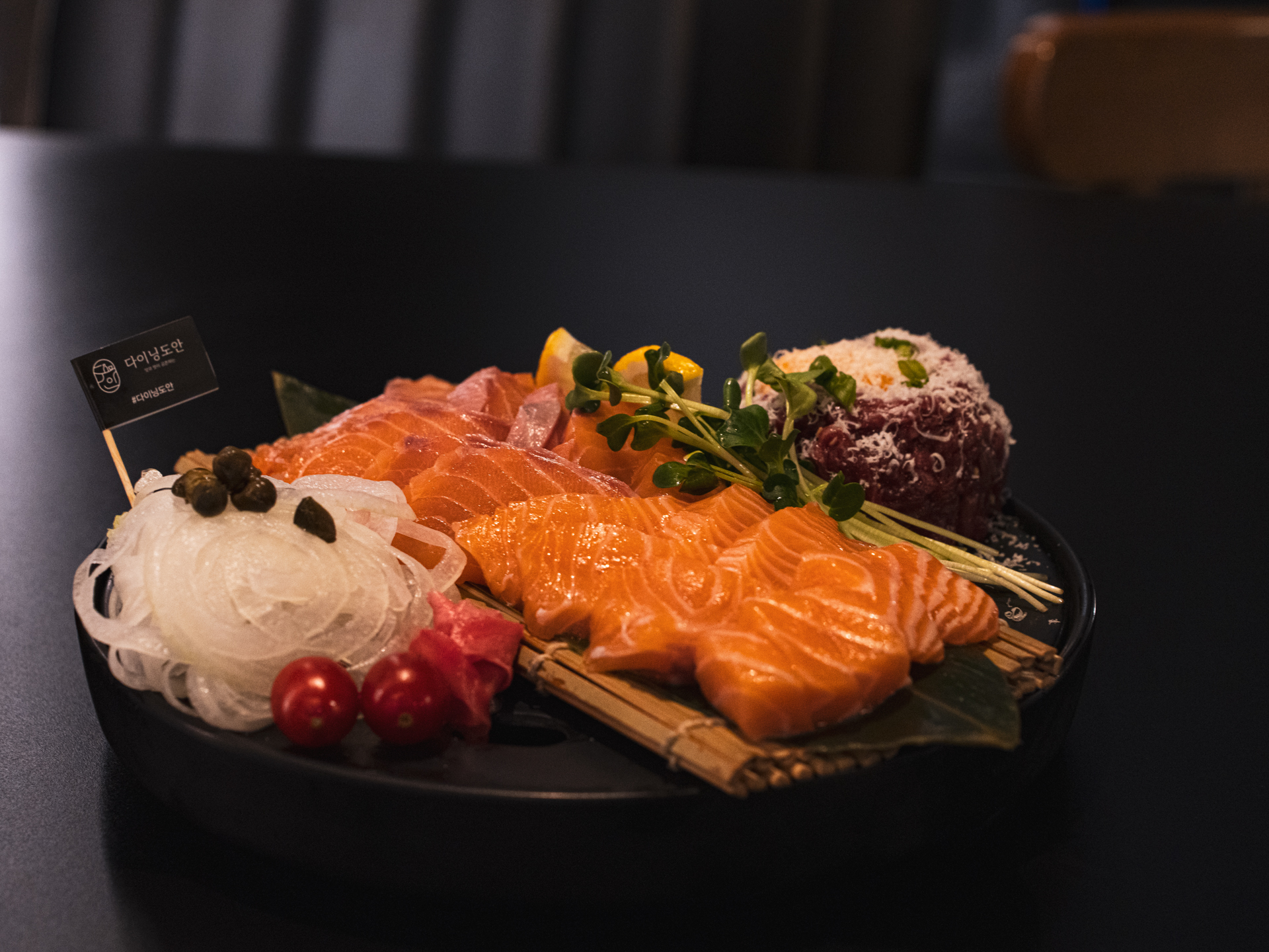 - 한우차돌사시미&연어 (half) 52,000원