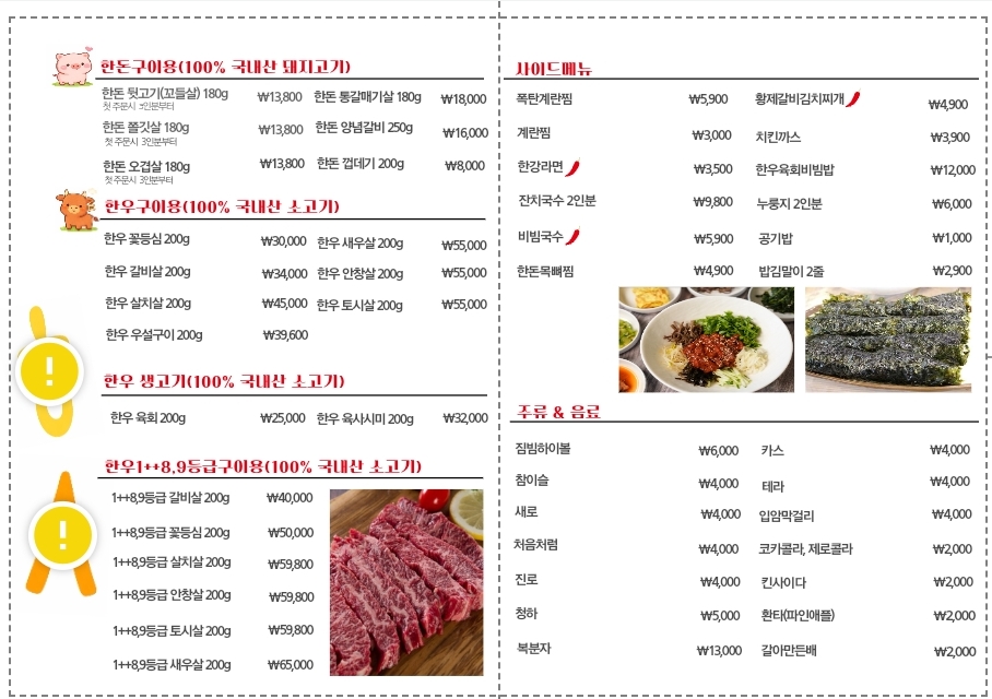 JJ050179소고기와 육회비빔밥이 맛있는 한상 정육점과 식당을 겸업해 최대 1++ BMS 9등급 한우와 안창, 토시 같은 특수부위들이 상시 구비돼 있어 장점이 있다 고기는 숯불로 구워내 풍미가 살아있는 게 특징으로 소금과 함께 먹으면 고기 본연의 맛이 극대화된다 (+육사시미도 쫄깃하고 맛있음) 여담으로 육회비빔밥이 별미인데, 육회와 채소의 밸런스가 좋고 같이 들어간 국내산 고사리가 소고기장조림이 연상되는 듯한 부드러운 식감과 맛을 보여준다 정읍에서 퀄리티 높은 고기를 먹고 싶다면 추천하는 식당