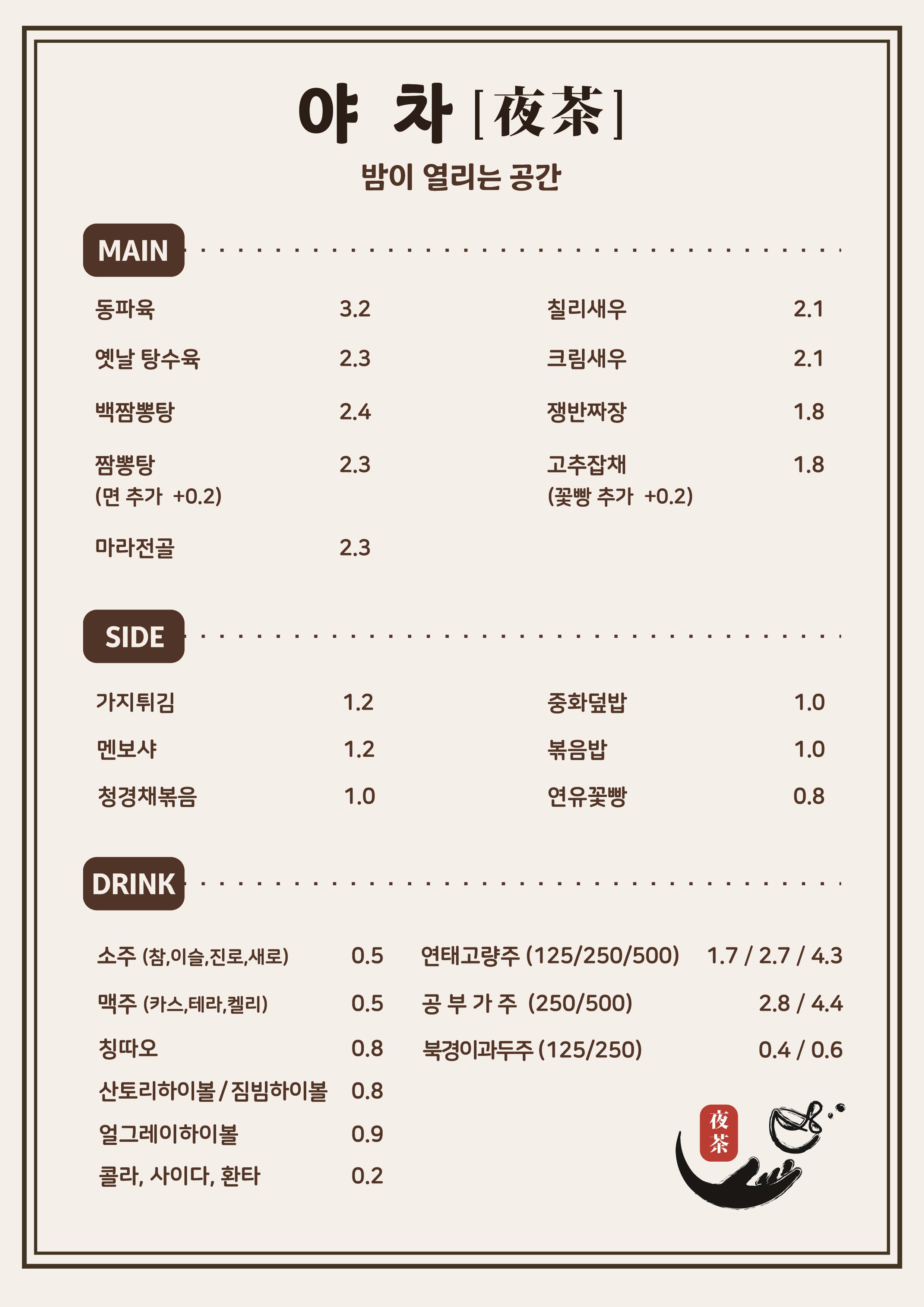 워터범대구 삼덕동에 위치한 야차는 단순한 포차 스타일이 아닌 맛과 분위기를 모두 갖춘 프리미엄 중식 술집으로 바 테이블과 테이블 공간으로 나뉘어 분위기가 더욱 좋았으며 겉은 바삭하게, 속은 촉촉하게 튀겨 낸 돼지고기에 케찹 베이스로 완성한 정통 옛날 스타일의 탕수육과 겉바속촉 그리고 소스 맛이 일품인 크림새우까지 모든 메뉴들의 맛과 퀄리티가 뛰어나 너무 맛있게 먹을 수 있었습니다. 이 외에도 다양한 안주들과 주류들이 준비되어 있기에 꼭 한 번 방문해 보시는 걸 추천드립니다.
