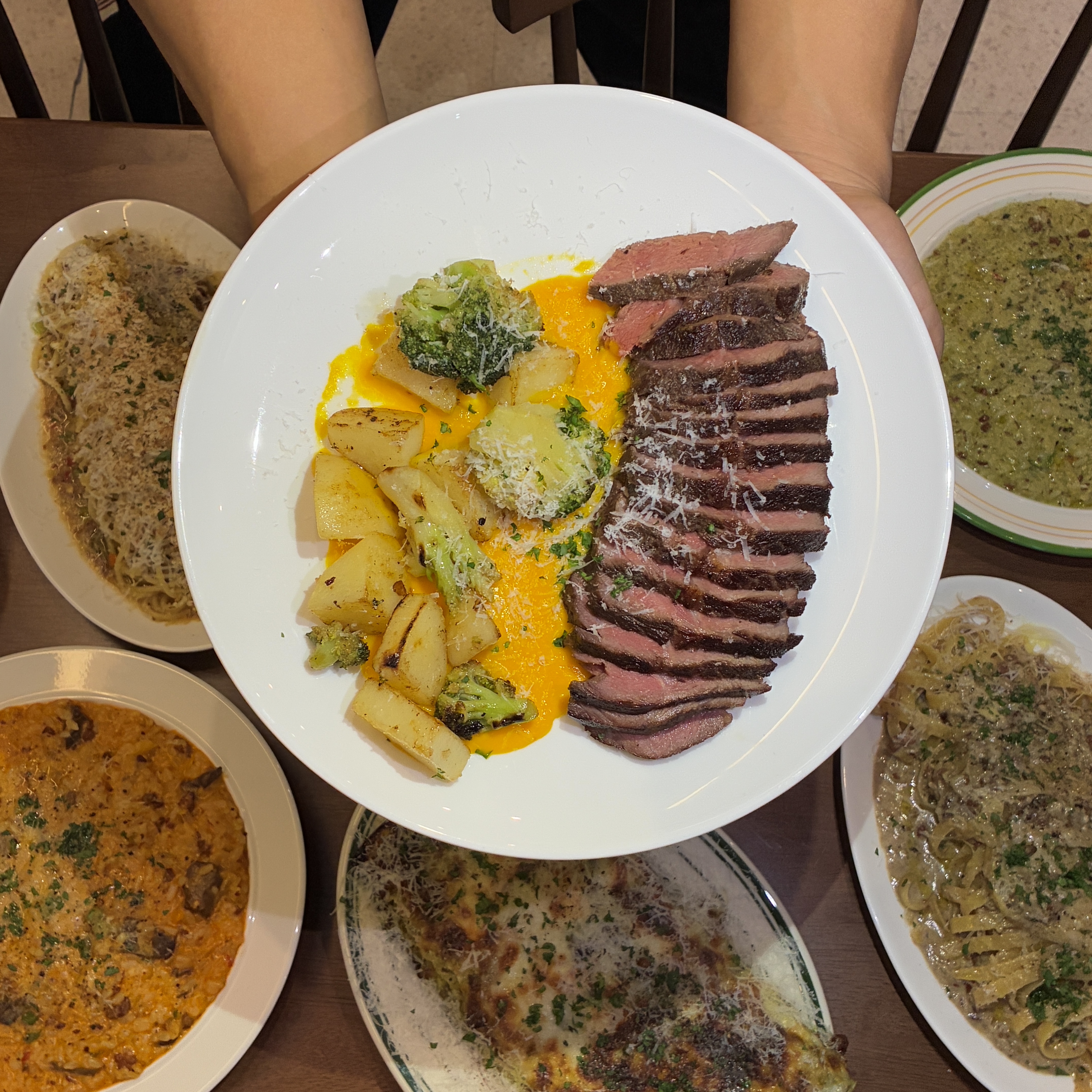 se****점심 라구세트 먹었습니다 . 스테이크가 미디움레어로 나왔는데 익힌정도나 시즈닝이 강하지 않아서 잘 먹었습니다. 특히 호박소스? 찍어먹으니 또 다른 맛이 참 좋았습니다 . 버터 알리오 올리오 향이나 간 강하지 않아서 잘 먹었습니다.