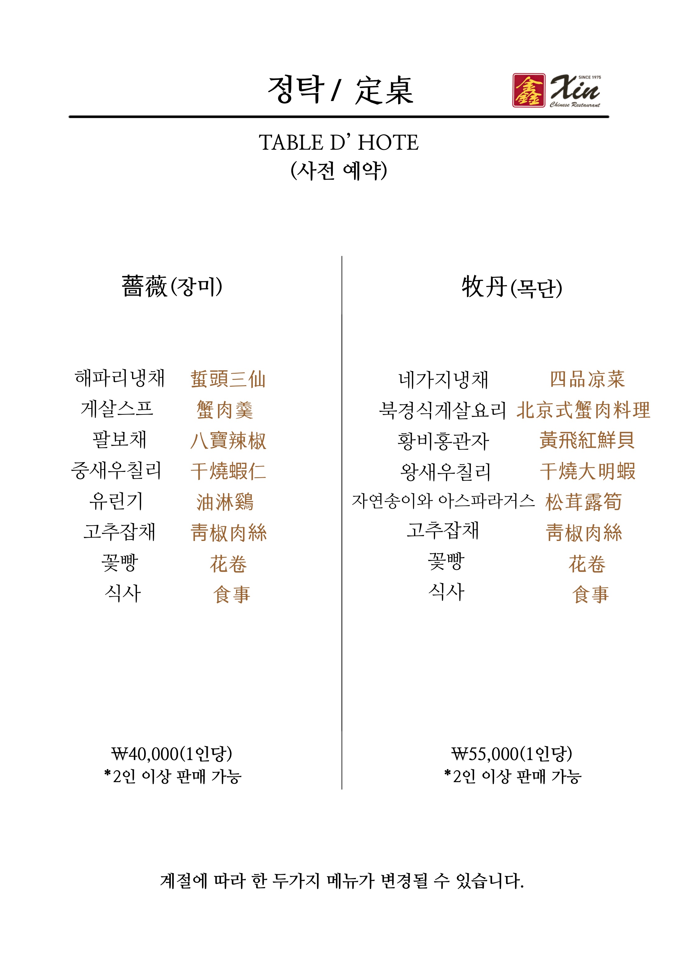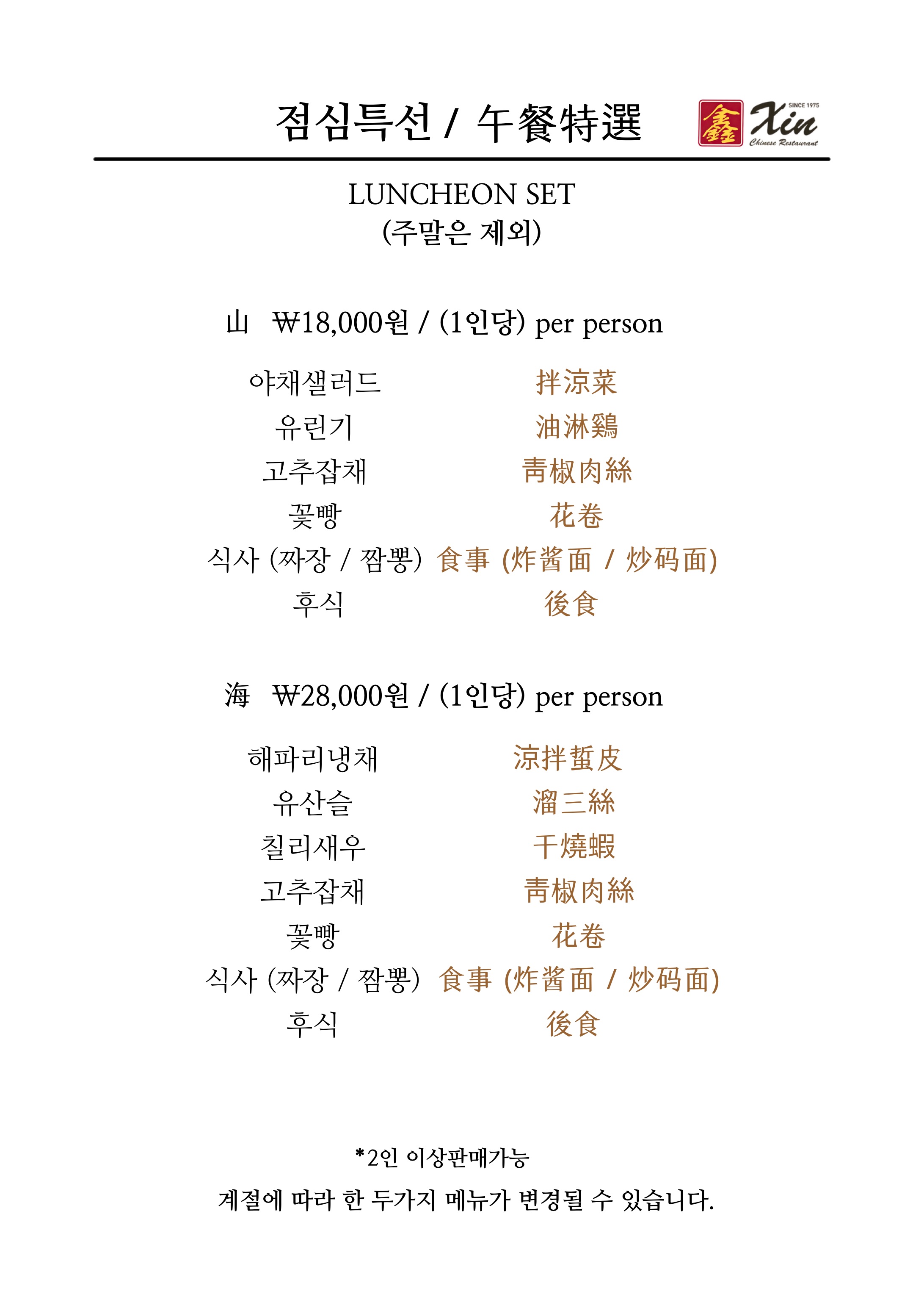 - 쟁반자장면(2인분) 18,000원