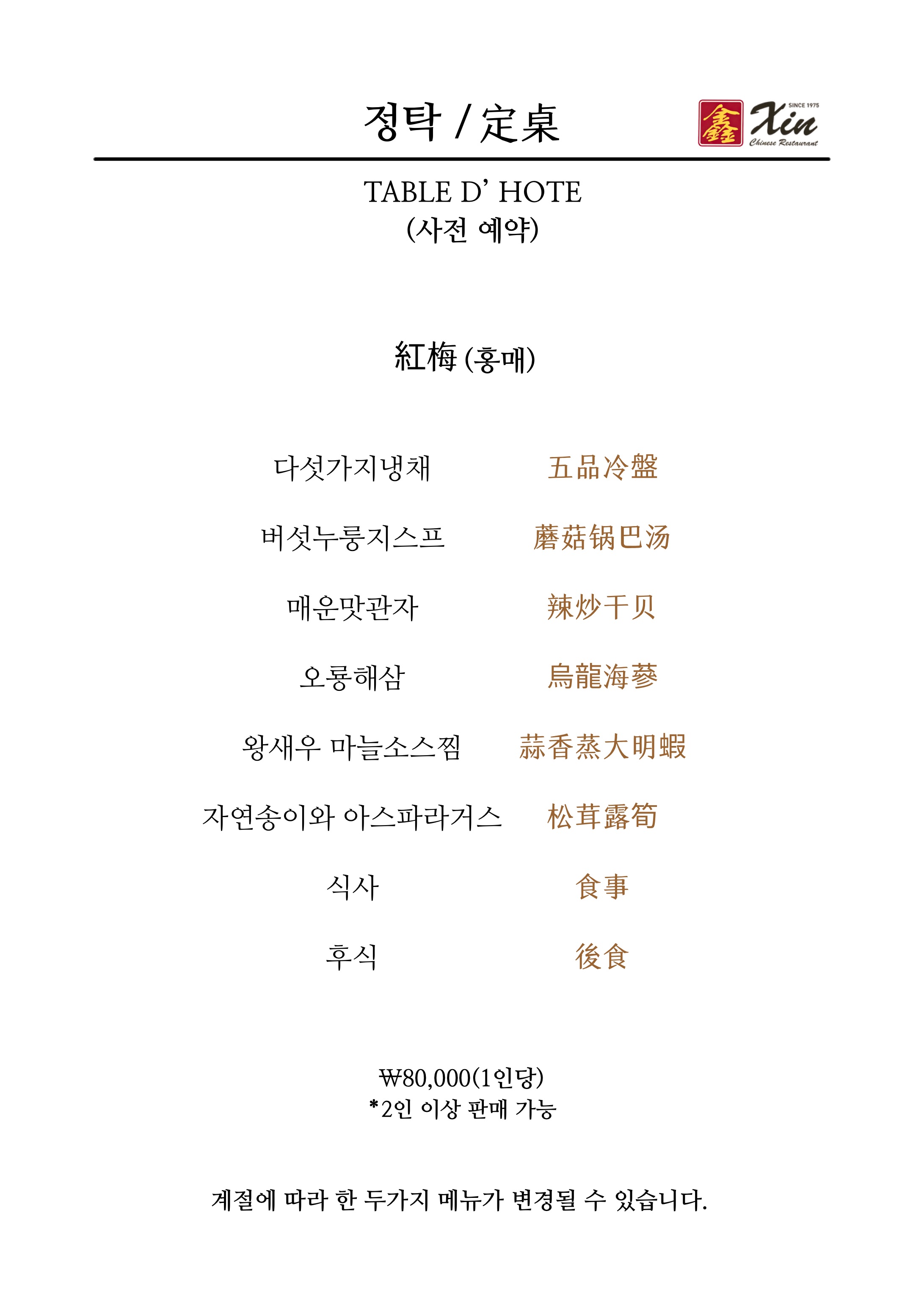 - 전가복 80,000원