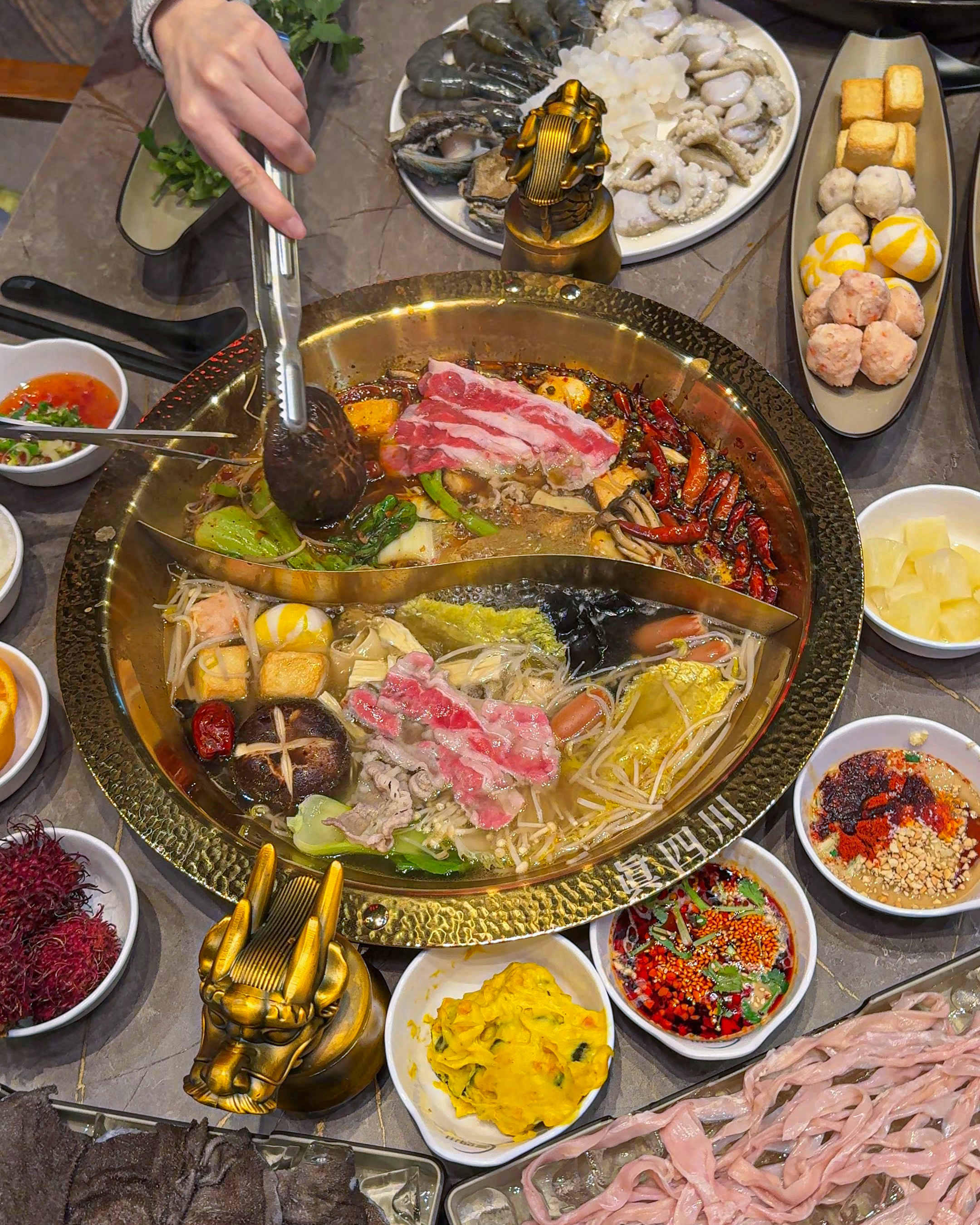 ily****평소 훠궈매니아로 새로 생겼다는 소문 듣고 얼른 와봤어요. 국물이 다양하고 매운맛도 고를 수 있어서 좋아요. 샐러드바에 소스도 다양하고 오리탕탕이와 배추 샐러드 등도 맛있습니다. 너무 맛있게 잘 먹었습니다💕