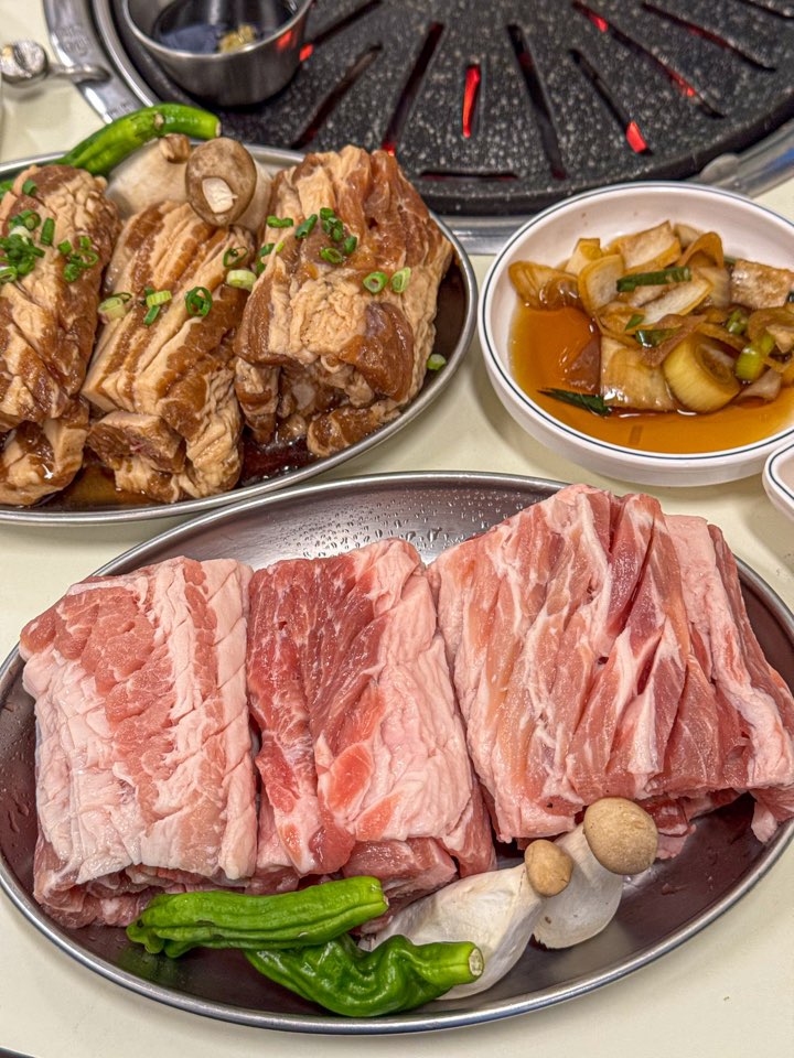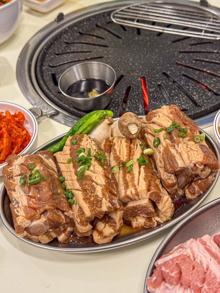 애빙그레집 근처에 생겼길래 오며가며 보다가 와봤어요! 늘 사람이 많던데, 가격도 괜찮고 고기도 맛있네용ㅎㅎ 불판도 커서 고기 굽기 좋았고 셀프바 있어서 편했어요!! 소고기랑 돼지고기 둘 다 먹을 수 있어서 좋아요❤️