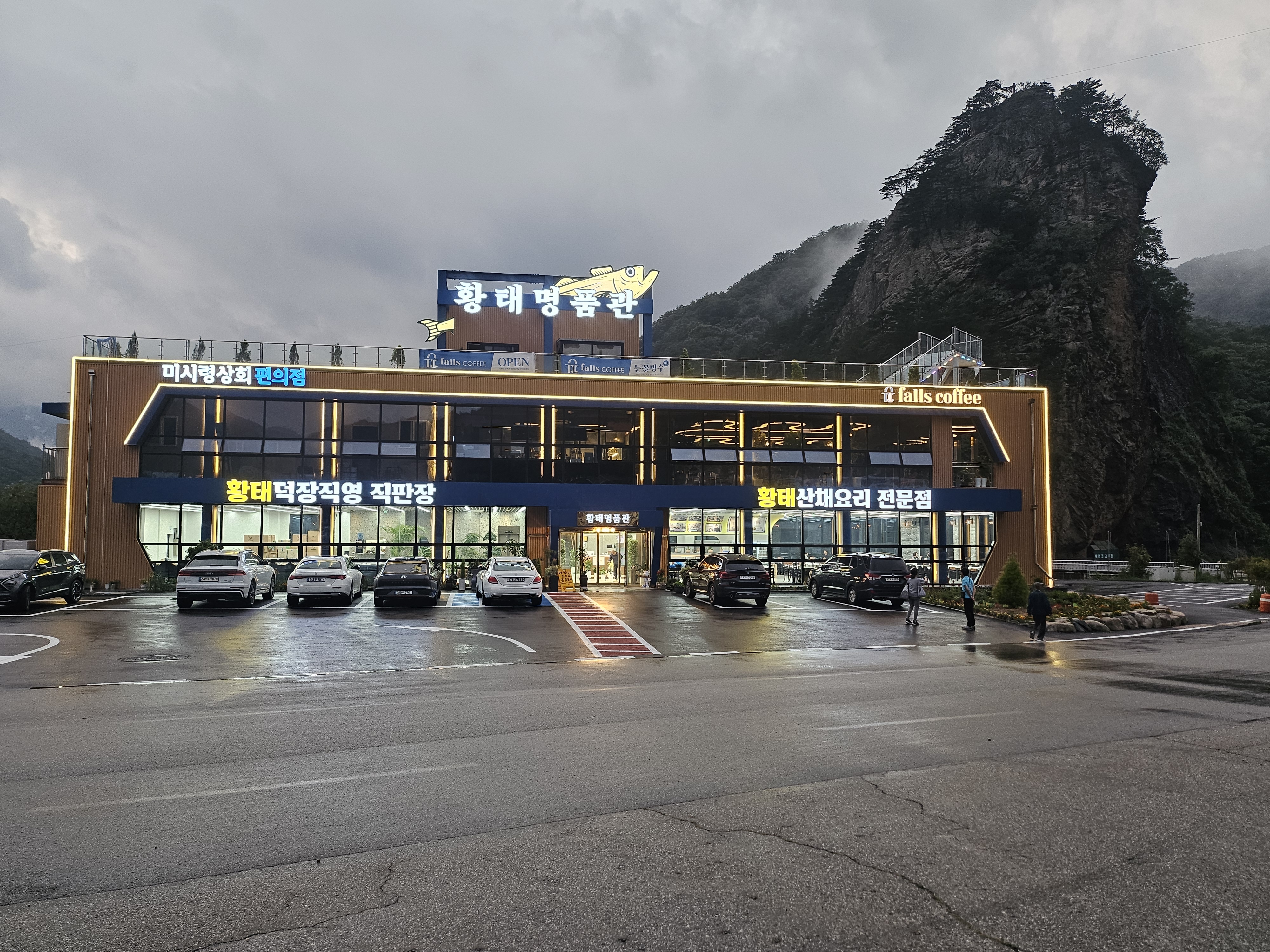 원더걸용대리 주말장터 갔다가, 황태정식먹고 왔어요. 용대리 황태축제장 맞은편인데, 여기 오신 손님중에 서울에서 드셔보시고, 다시는 안먹는다고 했다는데 강원도 인제와서 직접 드시고는 여태 속아살았다고 한탄을 하시더라고요... 우리동네 말고도 고성, 평창, 심지어 경상도에서도 나온다는데 그 맛이 확연히 차이가 있더랍니다. 특히 서울에서 먹었을 때는 이게 왜 유명한지 조차 이해가 안가더래요..... 일단 여러 메뉴중에 황태정식을 주문했는데 약간 매콤한 황태구이 1마리와 맛깔난 나물반찬들 그리고 구수하고 부드러운 황태국이 함께 나옵니다. 반찬들이 대부분 나물종류라 산채느낌이 물씬 나서 고추장 찾을 뻔 했습니다. 게다가 황태국은 보얗고 부드러운데, 황태 도함 듬뿍 들어있더군요.. 용래리 와서 먹는 황태는 역시 탁월한 선택인듯합니다. 황태명품관 전경과 용대리 주말장터 한국무형문화유산 명인패와 인증서 황태정식 1인분