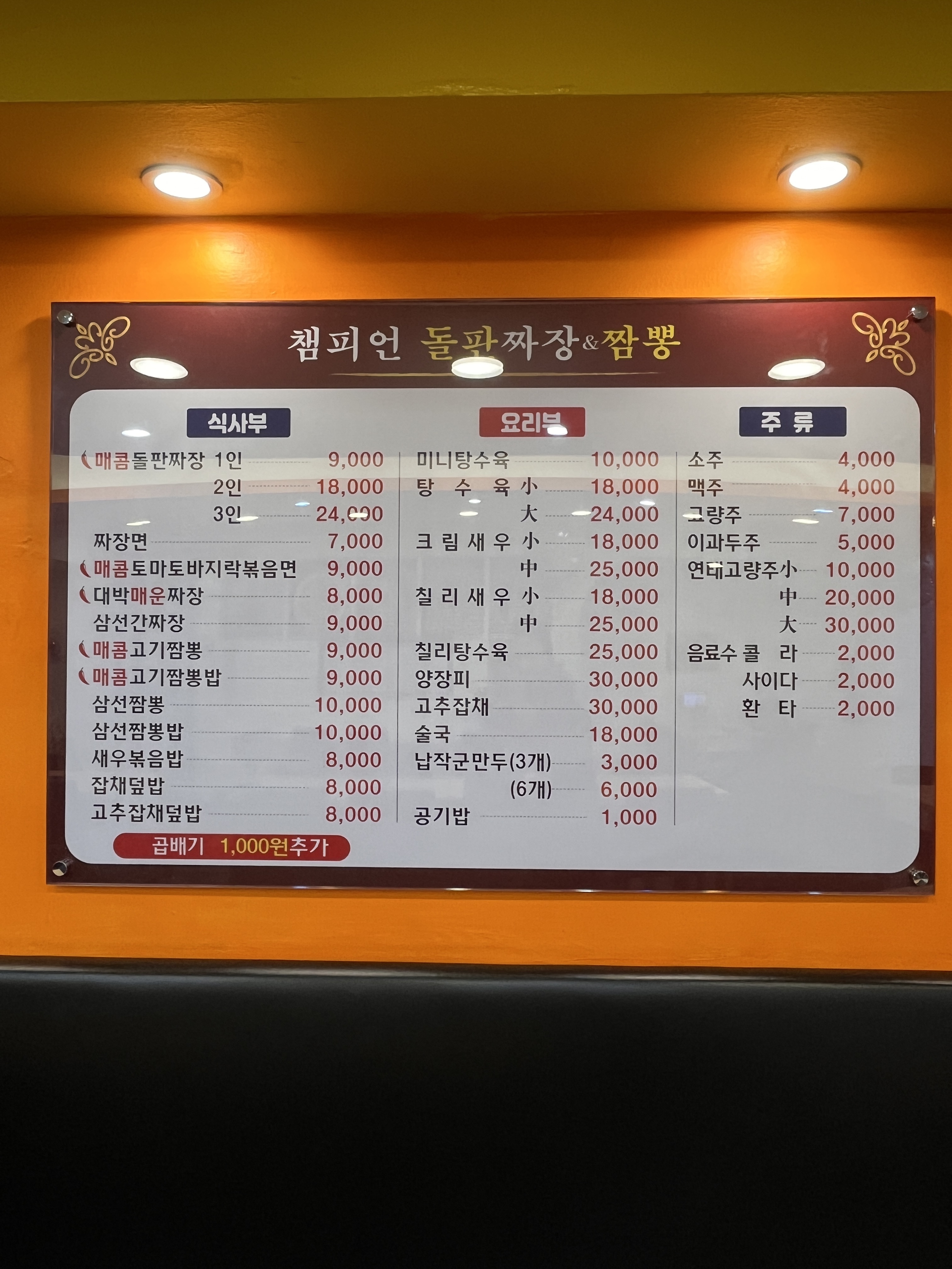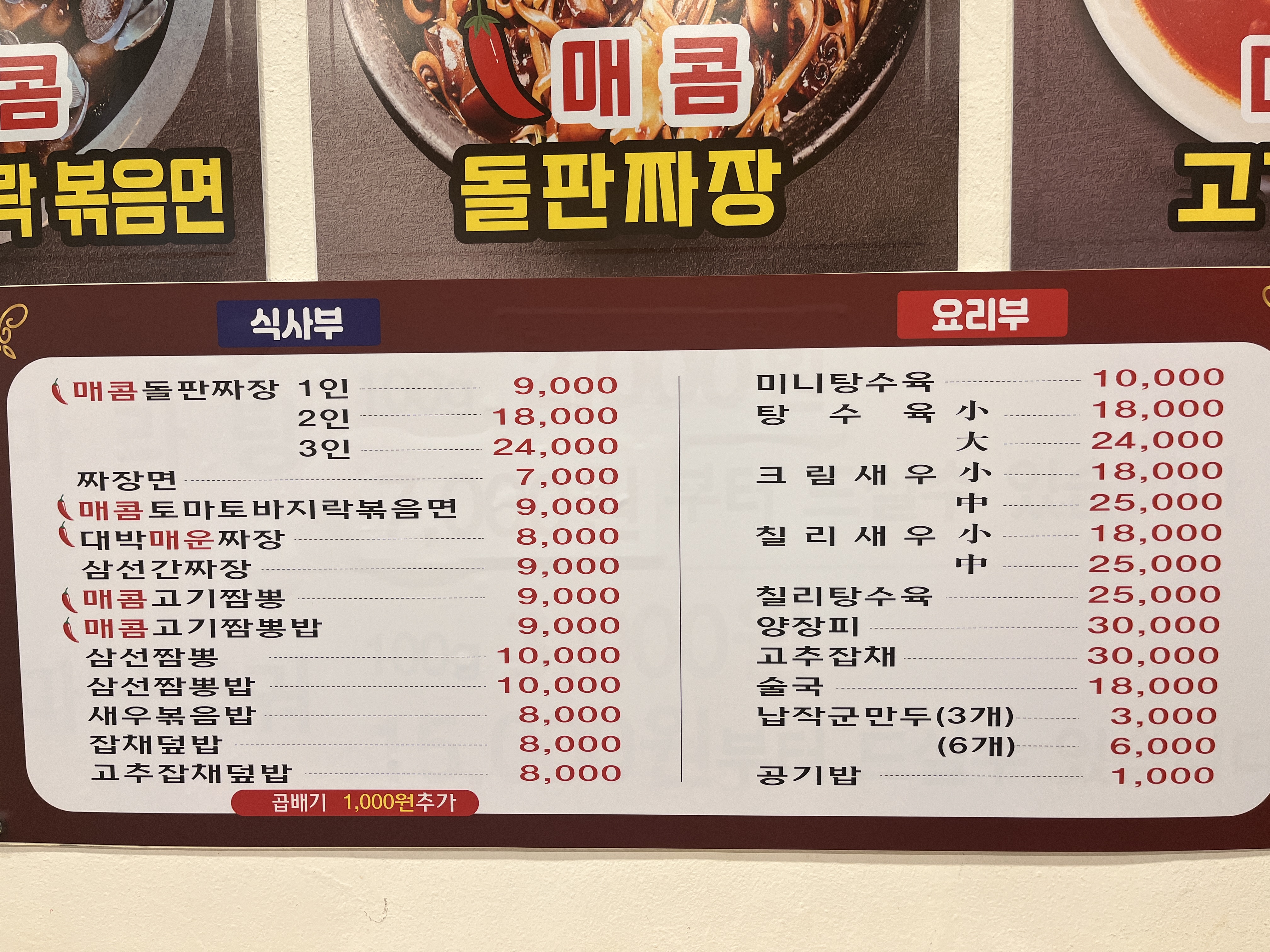 - 매콤 돌판짜장 중 18,000원