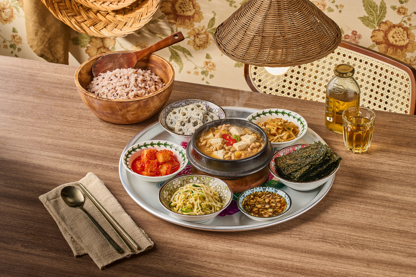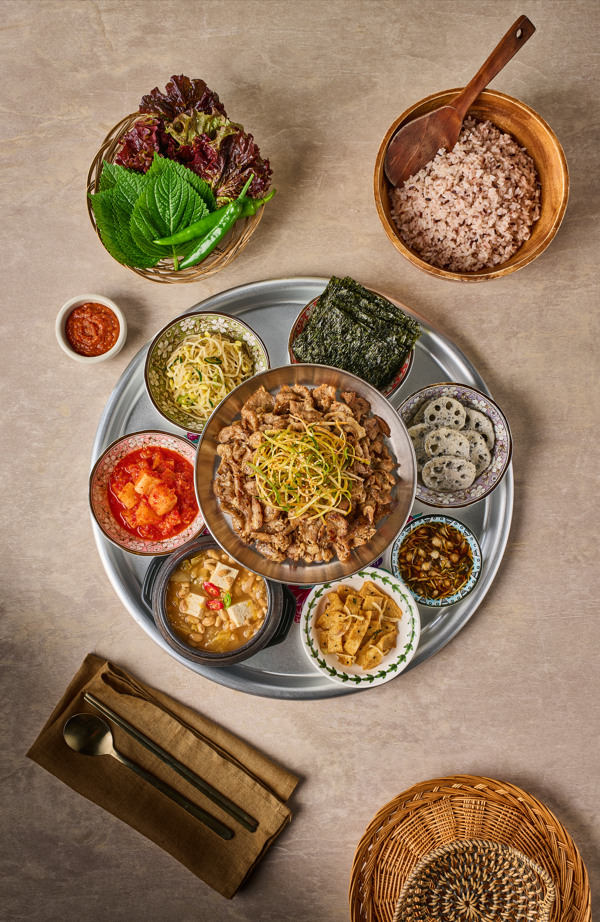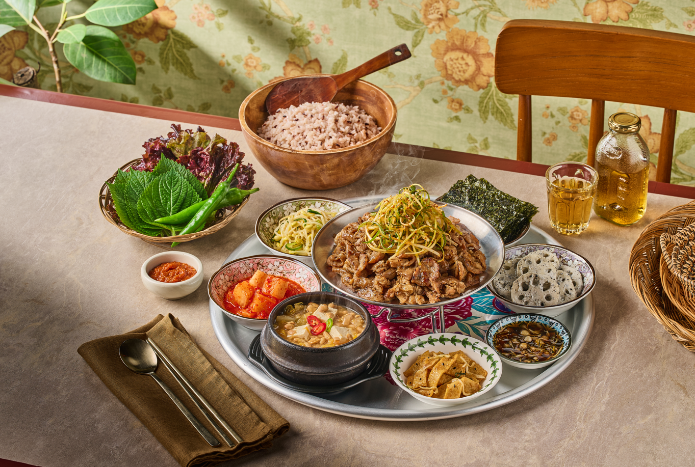 낑깡이져아오늘 점심으로 불고기 한상 먹었는데 진짜 대만족👏 일단 상차림부터 눈이 즐거움. 스텐 쟁반에 반찬이랑 불고기가 빙 둘러져 나오는데 옛날 백반집 느낌 물씬. 불고기는 양이 꽤 넉넉하고 간이 짜지 않게 잘 배어있어서 밥이랑 같이 먹으면 딱임. 위에 올라간 당근채, 양파채가 아삭해서 고기 느끼함을 잡아줌. 반찬은 깍두기, 오이소박이, 고추장아찌, 그리고 메밀전병까지 나왔는데 메밀전병이 나오는 집은 좀 드물어서 반가웠음. 쫀득하니 맛있었고. 잡곡밥은 나무 공기에 담겨 나오는데 양도 충분하고 찰기가 있어서 좋았음. 쌈채소도 따로 나와서 고기 싸먹기 좋아요🥰