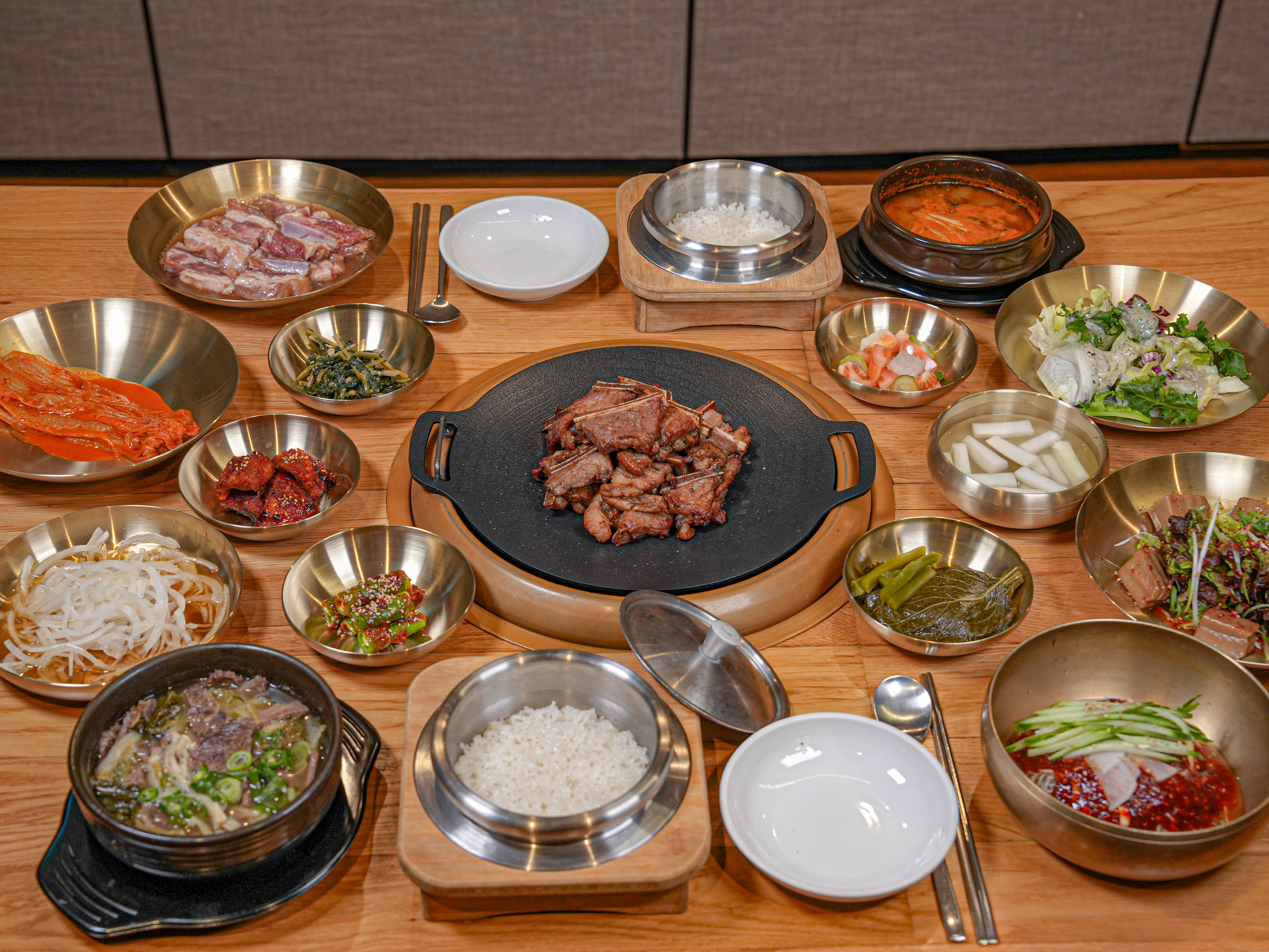 디지털쉐프이혜정진고복식당 AK& 기흥점은 AK& 기흥점 4층에 위치해 있어요. 매장도 홀도 넓고 룸도 충분히 있어요. 그래서 단체 모임하기에도 좋고 고깃집인데 고기 냄새가 나지 않아요. 안에서 다 구워져서 나와서 먹는 구조라 깔끔하게 식사할 수 있고 매장 관리가 잘 되어 있어서 깨끗하고 좋더라고요. 그리고 반찬도 셀프 코너에서 가져다 먹을 수 있고 그릇도 유기 그릇에 나와서 고급스럽고 대접받는 느낌이 나요. 솥밥에 냉면을 후식으로 시켰는데 함흥냉면이 국물도 맛있고 면발도 가늘고 쫄깃해서 정말 맛있더라고요. 고기는 양념 돼지갈비였는데 진짜 소갈비 먹는 것처럼 맛있어요. 양념고기가 정말 맛있더라고요. 반찬도 셀프 코너에 있는 반찬 외에 코다리 그리고 볶음 김치까지 나왔어요~ 마지막 과일 디저트까지 맛있었어요. 주차장도 넓어요