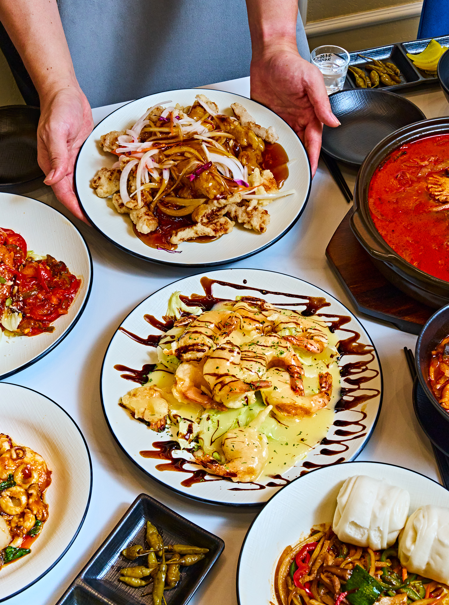 당기기박도원반점 인천 검단점은 전체적으로 깔끔하고 편안한 분위기라 식사에 집중하기 좋았습니다. 매장은 생각보다 넓고 가족 단위 손님도 부담 없이 방문할 만했어요. 여코스 2인은 구성 균형이 좋아 함께 나오는 메뉴를 다양하게 맛볼 수 있었고, 로제해물짬뽕은 담백한 국물에 해물이 잘 어우러져 깔끔한 풍미가 느껴졌습니다. 명란군만두는 짭조름한 명란의 맛이 은은하게 살아 있어 식사에 포인트가 되었어요