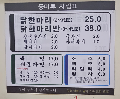 - 닭한마리반(3~4인분) 40,000원