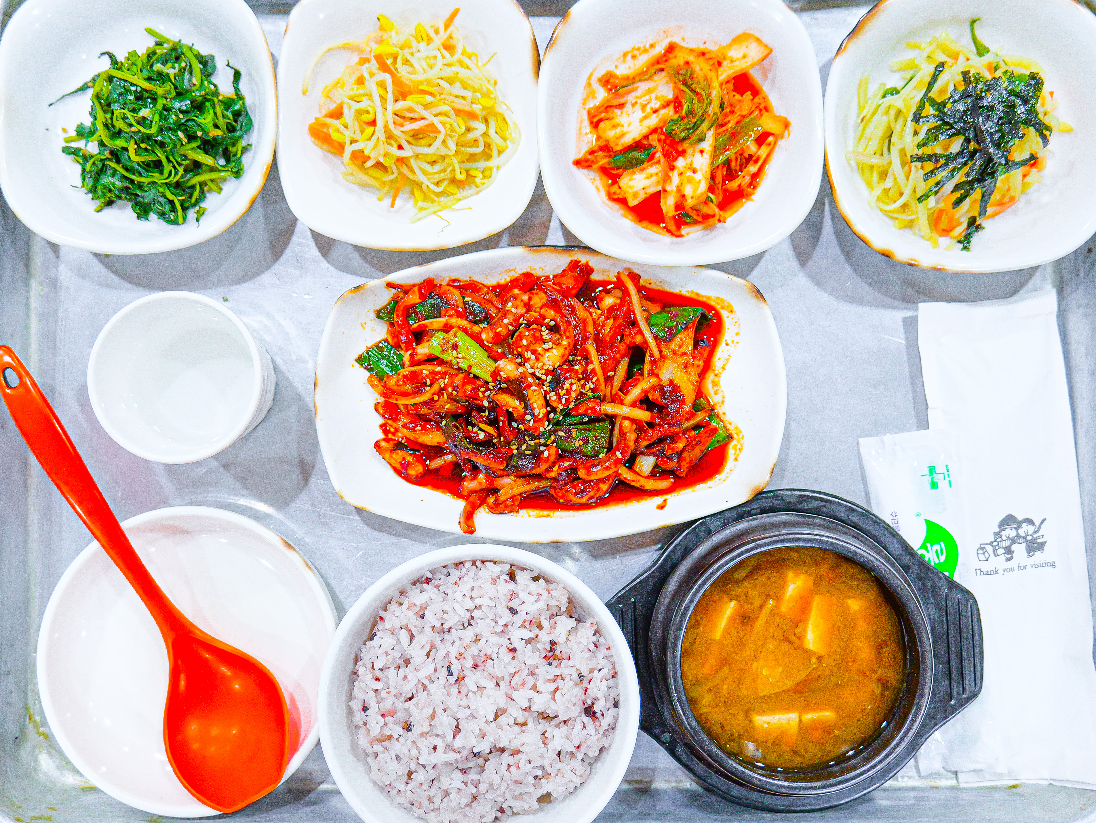 꼬둥아둥오늘은 동네 상도 전통시장 안에 있는 ‘함지박’에 다녀왔어요! 어제 남편이 갑자기 “우리 동네 밥집이 인스타에 떴어” 하면서 보여주는데, 보니까 시장 안에 있는 밥집이더라고요. 그중에서도 낙지볶음이 너무 맛있어 보이는 거예요 그래서 다음 날 바로 내일은 무조건 낙지볶음이다! 다짐하고 방문했습니다. 그런데 말입니다… 낙지볶음은 2인 이상 주문이더라고요 혼밥러는 조용히 마음을 접고 다른 메뉴를 천천히 살펴봤습니다. 주변을 보니 찌개류도 많이 드시고, 돌솥밥, 제육볶음도 테이블마다 하나씩은 있더라고요. 다들 메뉴가 너무 다양해서 괜히 더 고민되던 순간… 결국 제일 무난하고 실패 없는 제육볶음을 주문했어요! 근데 여기… 밑반찬부터 찐입니다. 가지무침, 시금치나물, 깍두기, 콩나물무침까지 하나같이 정갈한 진짜 집밥 반찬 느낌이에요. 거기에 된장찌개 같은 국물까지 같이 나와서 밥 도둑 준비 완료 상태 제육볶음에 빠질 수 없는 쌈채소도 신선하게 한가득 나왔고요. --- 상도 전통시장 가신다면 한 끼 든든하게 먹기 좋은 함지박, 꼭 한 번 들러보세요! -- 한 상 가득 차려지니까 괜히 더 맛있어 보이더라고요. 쌈 야무지게 싸서 밥을 착착 비워나가는데… 문제는 제육볶음이 줄지를 않아요 ㅋㅋㅋ 양이 정말 많아서 “어? 이거 왜 아직도 있지?” 이 말이 절로 나옵니다. 결국 다 먹긴 했는데 진짜 배부르게, 아주 든든하게 먹고 나왔어요 인심 하나는 확실한 집이에요. -- 시장 안에 있어서 그런지 가격도 부담 없고, 혼밥·점심 식사로 딱 좋은 곳이라 상도동 점심 맛집으로 추천하고 싶어요! 아, 그리고 하나 웃긴 포인트 가게 안에 사장님 여자친구 구인합니다 라는 문구와 함께 전화번호가 적혀 있더라고요. 괜히 한 번 더 보게 됐는데 참고로 사장님… 훈훈하시고 잘생기셨습니다 (이건 정보 공유입니다)
