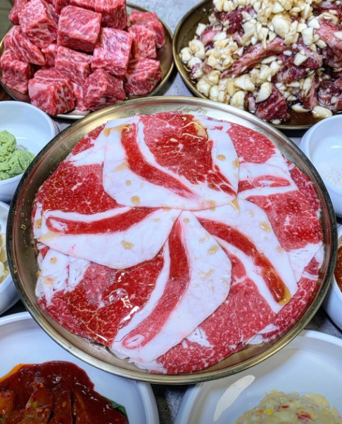 Gqfeb1저번에 먹구 너무 맛있어서 또 왔어요! 도삭등심 눈꽃갈비살 양념갈비살 너무 맛있어요 물냉면이랑 밑반찬두 너무너무 맛나구요 물도 보리차 개별수저 에요 무엇보다 저번엔 마감시간에 오구 이번엔 풀만석인데도 직원분들 너무 친절해요!
