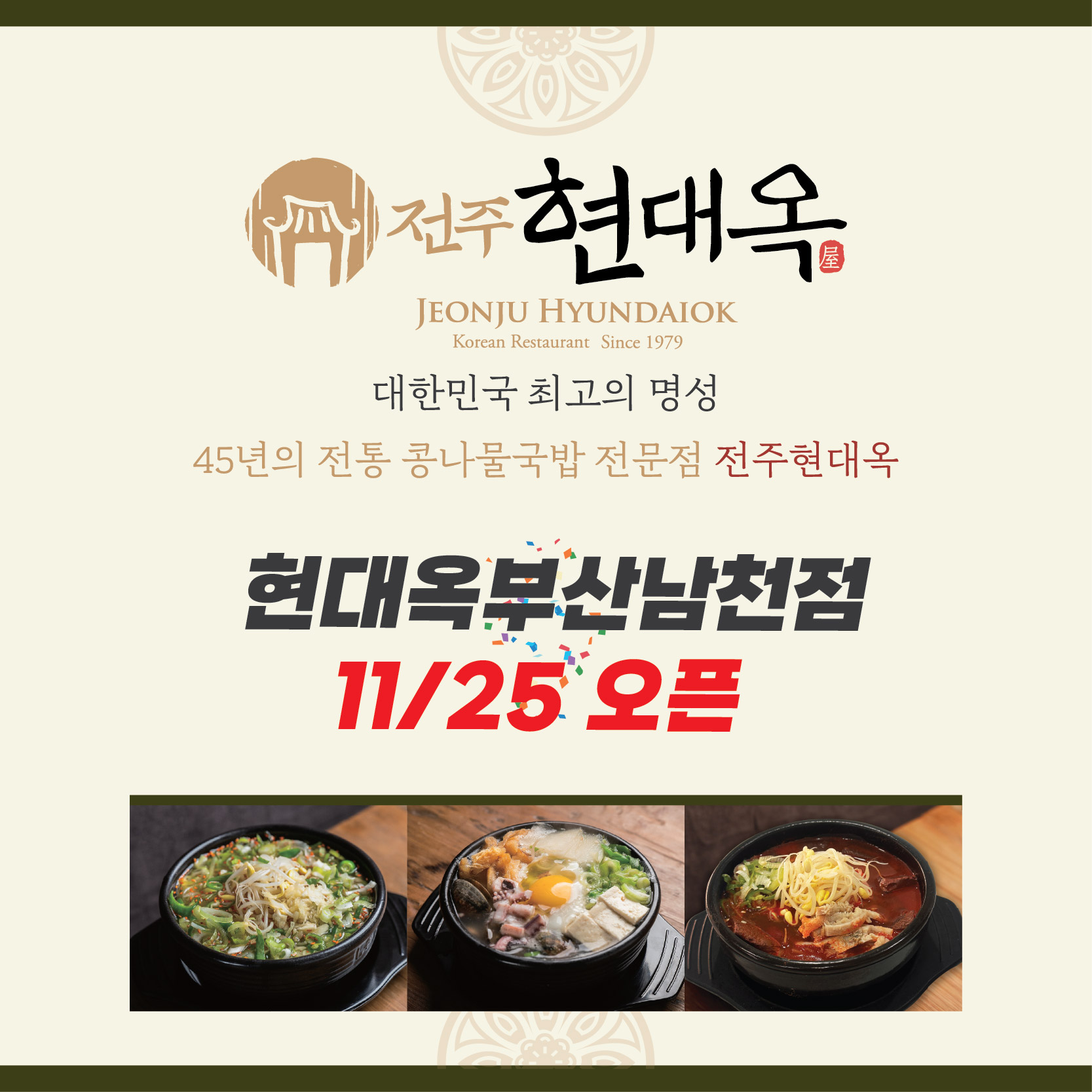 영쌤11최근 오픈했는데 맛있다고 얘기 듣고 집근처라 방문했어요~ 전주 현대옥을 부산에서 만나니 좋으네요 토렴 응용식 전주남부시장국밥 넘 맛있어요! 직원분들도 너무 친절해요 재방할거같아요~추천합니다!