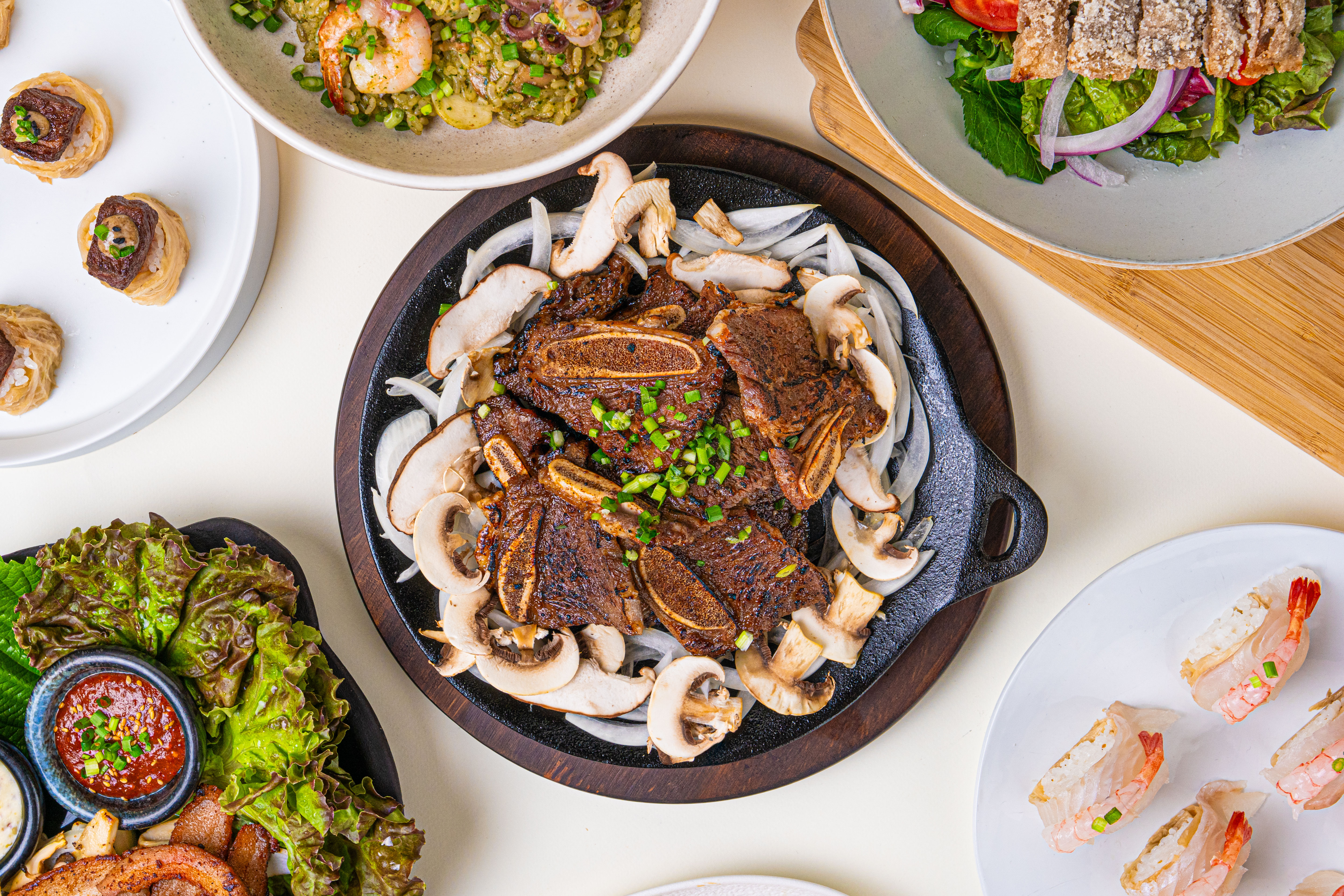 쥐야아울렛에 아들 축구화 사러 와서 가족들과 함께 저녁먹었는데 맛있어요. 육전샐러드, 항정살구이반상, 부채살버섯라이스, 돼지고기묵은지찌개 먹었는데 다 괜찮았어요. 성장기 아들은 고기 더 먹고싶어했지만 제가 보기엔 양은 괜찮아 보였어요. 대체적으로 메인음식은 약간 양이 많은 편이었어요.