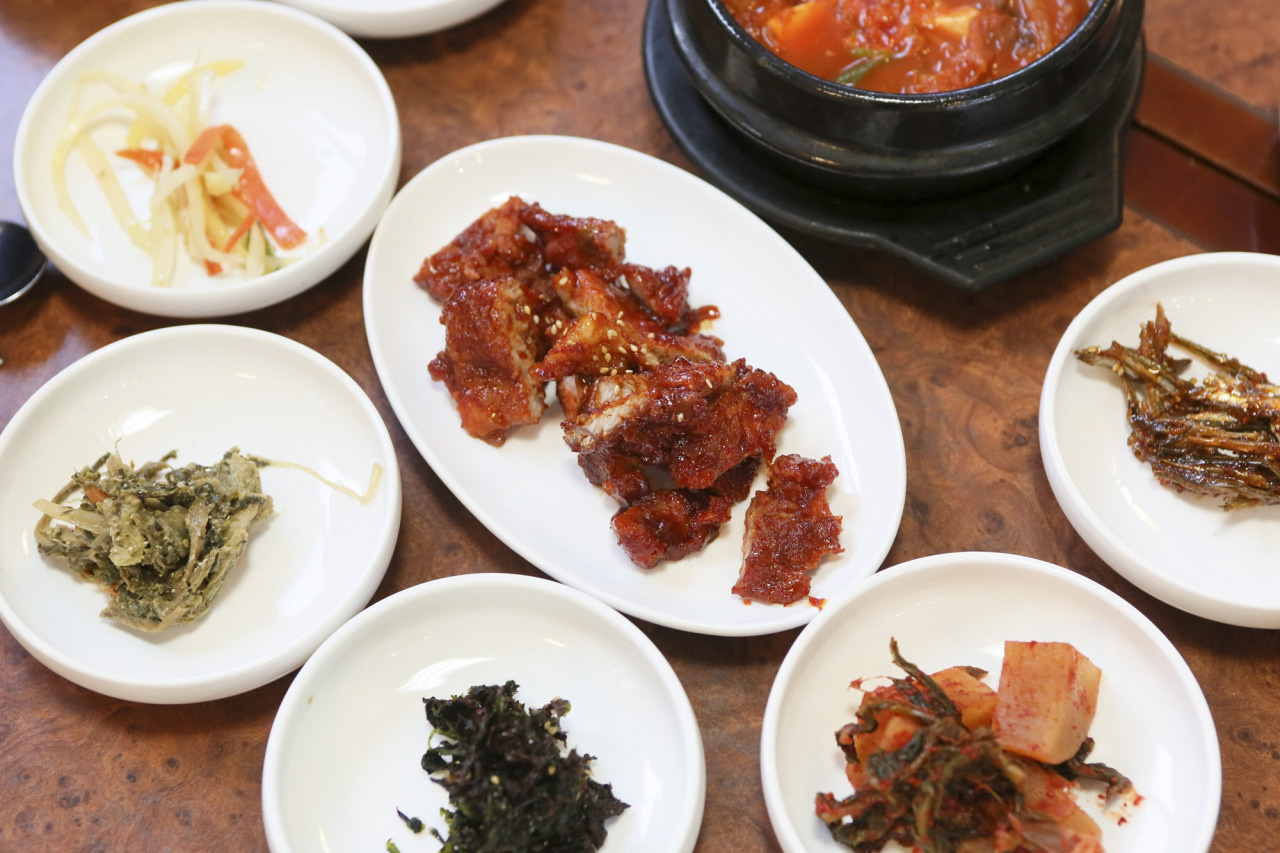 날씨가흐리다쌍화차 거리에 있어서 찾기 쉬웠어요. 주말이라 사람들이 많아서 식사 시간대 조금 벗어나 방문하면 좋을 것 같네요. 반찬이 많은데 그럭저럭 괜찮은 편이에요.