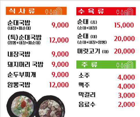 - 순대국밥 9,000원