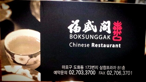 서울 마포구 마포대로 63-8 삼창주택 지하 1층 복성각, 삼창 프라자 지하상가 - 복성각 -공덕역 1번 출구 뚜레주르 끼고 돌아서 오시면동서식품 뒷편 삼창프라자 지하상