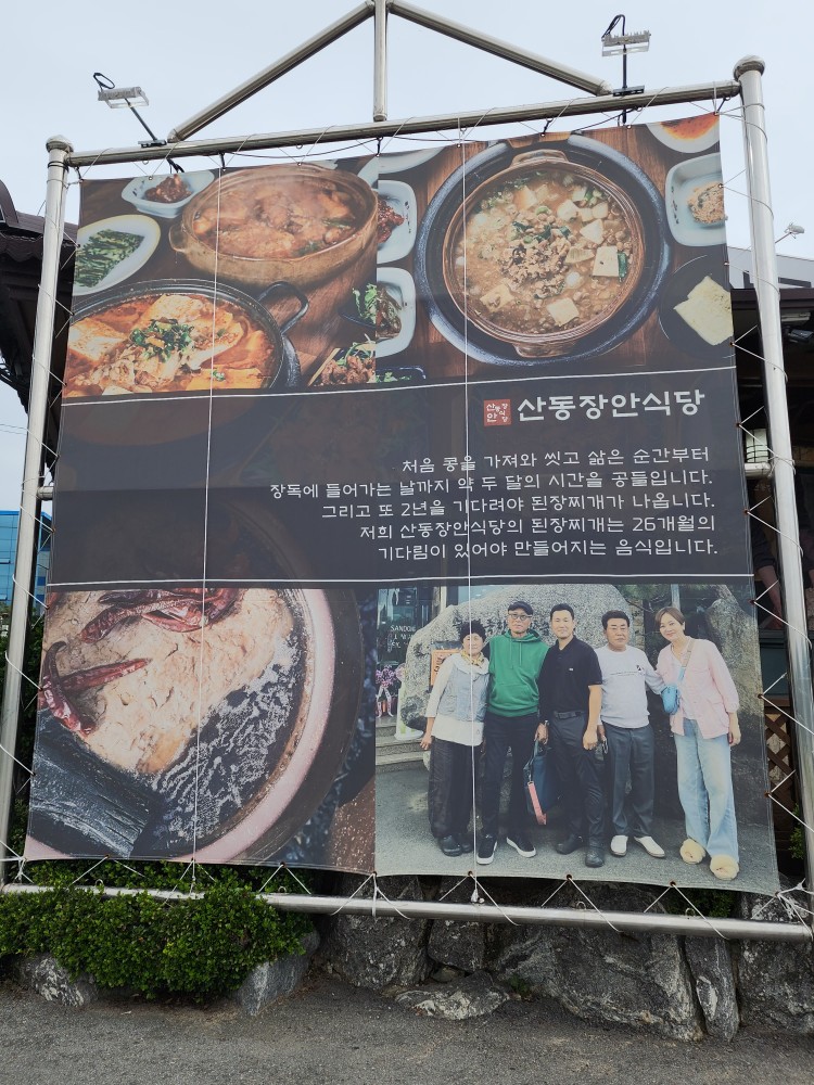 찐세산동맛집 선산cc맛집 산동장안식당은 국산콩으로 직접 청국장, 된장을 만들어 요리하는 한식당이에요. 가게 앞에 주차 몇 대 가능하고 건물 뒤편에 넓은 공간이 있어서 주차 걱정 없어요. 산동장안식당 영업시간 9:30~20:30 휴무없음(명절제외) 경북 구미시 산동읍 강동로 840 0507-1350-2015 주차가능 선산cc맛집 산동장안식당은 선산cc근처에 있어서 골프장 손님이 많은 편이에요. 넓은 홀과 단독룸이 있어서 회식이나 단체 모임이 가능해요. 테이블이 큼직하고 간격이 넓어요. 사장님이 상도 많이 받으셨고 각종 사인과 한식대가인증이 있었어요. 허영만의 백반기행에도 나왔더라고요. 석쇠불고기 청국장 정식 2인을 주문했어요. 고등어 된장 정식이랑 고민했는데 청국장 사진이 많아서 더 메인일 것 같단 생각에 청국장으로 선택했어요. 추가 반찬은 셀프바를 이용해요. 배추전과 편육은 선택이어서 셀프로 챙겼어요. 누룽지 숭늉도 셀프로 먹을 수 있어요. 석쇠불고기, 청국장이 메인이고 그 외에 다양한 반찬들이 나와서 정갈한 한정식 느낌이었어요. 청국장 먹고 싶어도 은근히 맛집이 없어요. 선산cc맛집 산동장안식당 청국장은 콩이 알알이 살아있어요. 청국장이 짜지 않고 담백해요. 청국장은 오래 끓이면 텁텁해져서 맛이 없는데 산동장안식당 청국장은 깔끔했어요. 콩이 너무 부드러워서 사르르 녹더라고요. 정말 맛있었어요. 비벼 먹을 수 있도록 나물과 김가루가 든 그릇을 주셔서 밥과 청국장 넣고 비벼 먹었어요. 석쇠불고기도 진짜 맛있어요. 간장 불고기일 줄 알았는데 고추장 석쇠불고기였어요. 불 맛도 났고 간도 좋았어요. 쌈 싸 먹었더니 맛이 더 풍부해서 그냥 먹는 것보다 더 맛있었어요. 수육? 냉수육인지 지방층이 없는 살코기 부위가 얇게 썰려 나오는데 저는 너무 담백해서 쏘쏘였고 짝꿍은 너무 맛있다고 했어요. 잡채도 맛있었어요. 산동장안식당은 기본적으로 간이 잘 맞아서 음식들이 다 맛있더라고요. 배추전도 맛있어서 여러 번 가져다 먹었고 편육은 잘 먹는 음식은 아닌데 여기 편육은 냄새도 안 나고 쫀득쫀득해서 괜찮았어요. 반찬도 이렇게 푸짐하게 나오고 청국장, 석쇠불고기도 양이 많아서 남은 청국장은 포장했어요. 요즘 식당에서 포장 용기를 별도로 받는 경우가 있는데 산동장안식당은 그런 거 없이 편하게 포장할 수 있어요. 아이가 청국장을 좋아하는데 같이 못 와서 먹는 내내 생각나더라고요. 두부만 추가해서 먹으려고요. 된장, 청국장 별도 구매 가능하고 청국장은 한 통 당 약 4인분 정도...