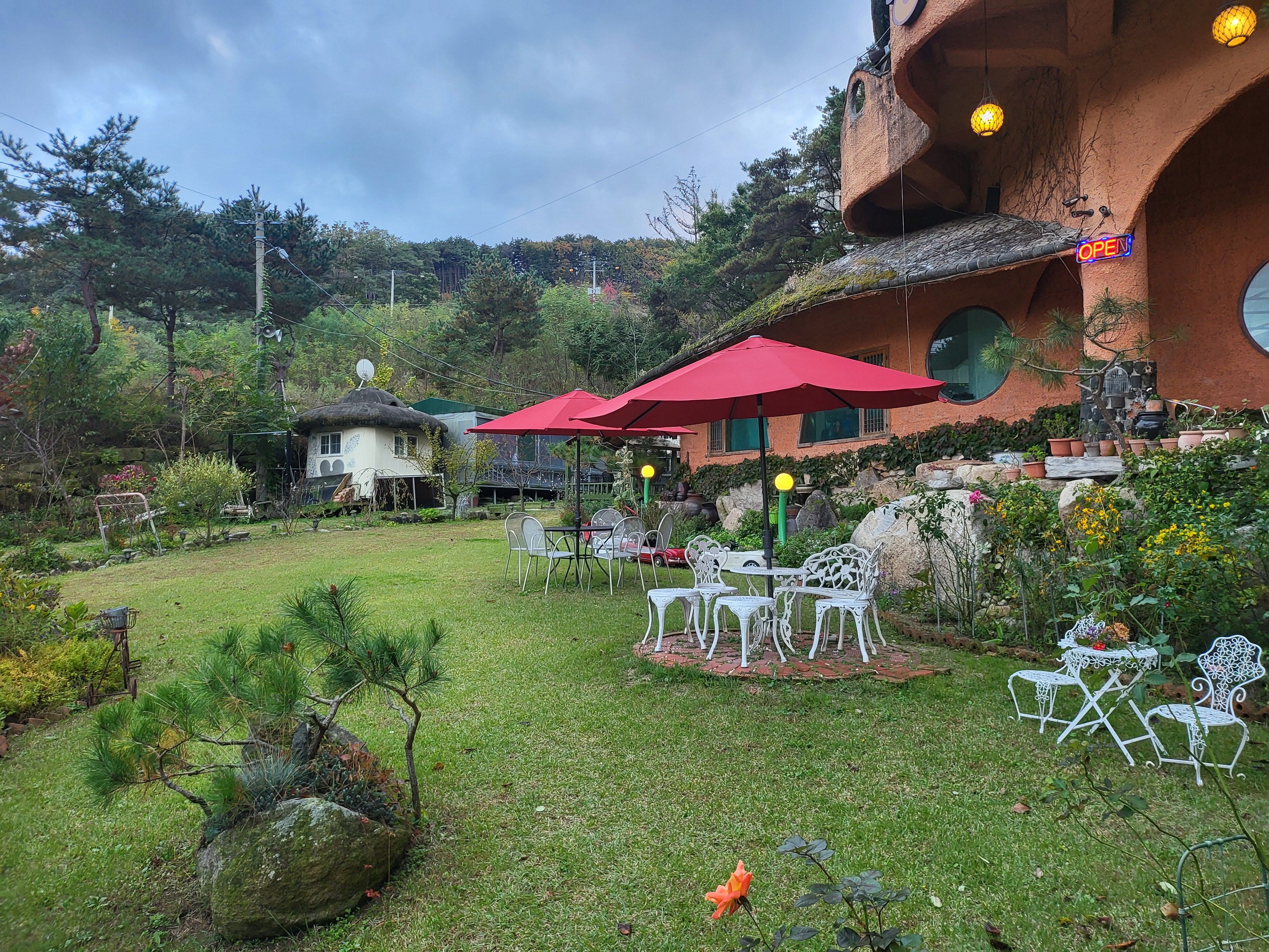 연의하루팔공산 찻집 동화속으로 오랜 친구 숙이랑 집콕의 스트레스를 풀겸 힐링의 장소로 찾아간 30년지기가 살고있는 팔공산 동화속으로 쉼을 위해 친구를 찾아 갔어요 오랜만에 만나는 친구의 얼굴에선 환한 미소가 꽃이되어 우릴 반겨 줍니다 매년 찾아갈곳 일순위를 정했지만 바쁜 일정을 소화시킬수 없어 미루어 미루다 찾아간 내친구의 보금자리 참 이쁘다 동화속으로 ~~ 이 곳에 오면 누구나 동화속의 주인공이 되고픈 맘이 될것 같다는 착각~~ 방갈로 가는 길목은 곧이어 꽃대궐이 아름답게 장식이 되겠지만 지금은 아치만 보여주지만 조아조아요 잔잔히 흐르는 물소리는 마음으로 상상하며 불빛이 물과 조화를 이루는 밤은 더 아름답겠지라고 생각해봅니다 방갈로가는 버섯모양도 앙징스럽다 겹겹이 소나무 사이로 피톤치드가 나의 잠자는 세포들을 하나씩 깨운다 숫자 일곱을 좋아하기에 일곱송이 방으로 들어간다 하얀 방갈로에서 하루 오롯이 나만을 위해 쉼을 주고 싶다 동화속으로 일층은 [대구 팔공산 맛집] 능이오리백숙 메인 메뉴로 인기가 가장 많다고 합니다 전 세계가 어수선한 바이러스로 오랜친구 숙이네도 잠시 휴업을 하고 있어서 맛집으로 소문난 능이오리백숙과 버섯전골을 맛을 볼 수 없었네요 송이송이 사랑을 담고있는 금낭화, 내 친구를 닮은 이쁘고 열정적인 양귀비의 화려함을 보며 음악이 흐르는 2층 찻집~~ 와우~~~ 남녀노소 불문 누구나 좋아할 분위기에 깜놀하면서 실내를 아이컨텍합니다 조용히 이야기를 나누고플땐 때론 혼자 멍때리고 싶을 때도 좋은 창가 뷰도 멋진 팔공산 찻집 동화속으로 실내 분위기도 이쁘당 내 친구는 언제나 느낌있는 그런 친구였기에 가능했을꺼야 암암 시선을 어디에 두어도 볼꺼리가 가득 하여 눈호강합니다 비 내리는 창가에서 따뜻한 차 한 잔과 음악을 연상하는 창문의 뷰가 엽서 같아요 친구가 살짜기 말해주내요 대추차를 강추한다구요 가끔씩은 라이브도 가능한 팔공산 찻집 동화속으로... 차와 음악과 치유를 위한 멋진 공간인것 같다 엔틱풍으로 세련된 멋스러움과 내 집처럼 따뜻하여 젊은층 보다는 중년층에 인기가 더 많을것 같다는 생각이 든다 숙이랑 훌쩍 찾아간 또 다른 친구 숙이가 살고 있는 팔공산 찻집 동화속으로 처음 가보았지만 넘넘 이쁘고 곳곳에 친구의 손길로 이루어진 아름다운 정원을 보며 노고에 찬사를 보내면서 머물고 싶은 곳 다시 찾고 싶은 곳 내 쉼 , 우리들의 쉼이 필요할 때 언제나 찾아가고픈 핫플레이스 !!!! 친구야 사랑한다...
