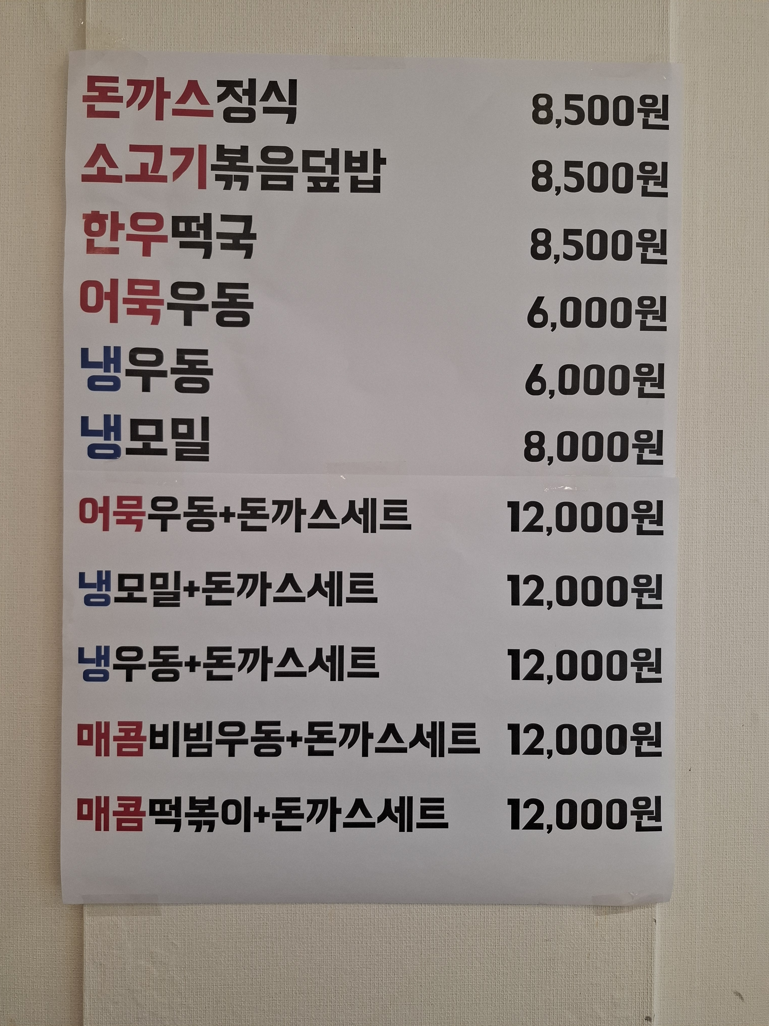 - 생등심수제돈까스정식 8,000원