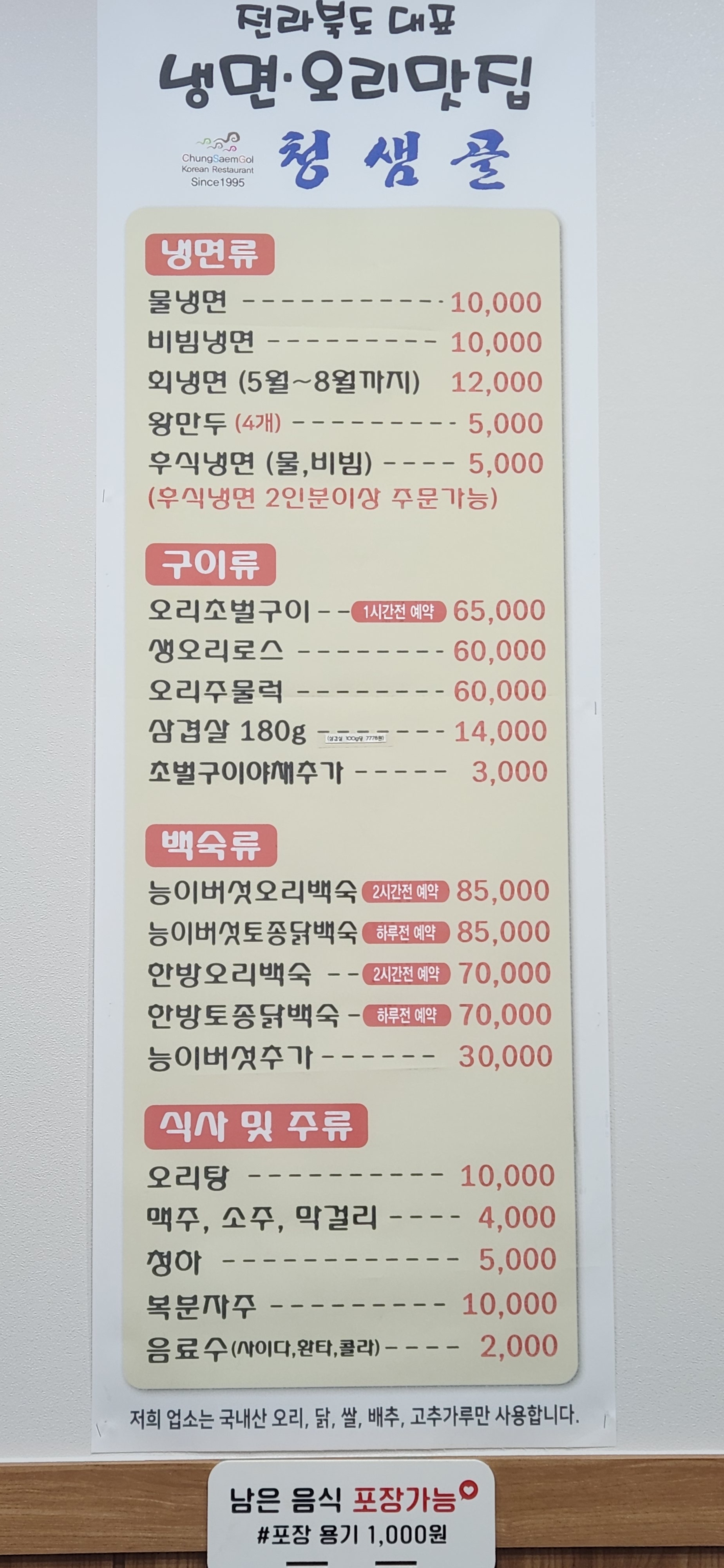 - 능이오리백숙 85,000원