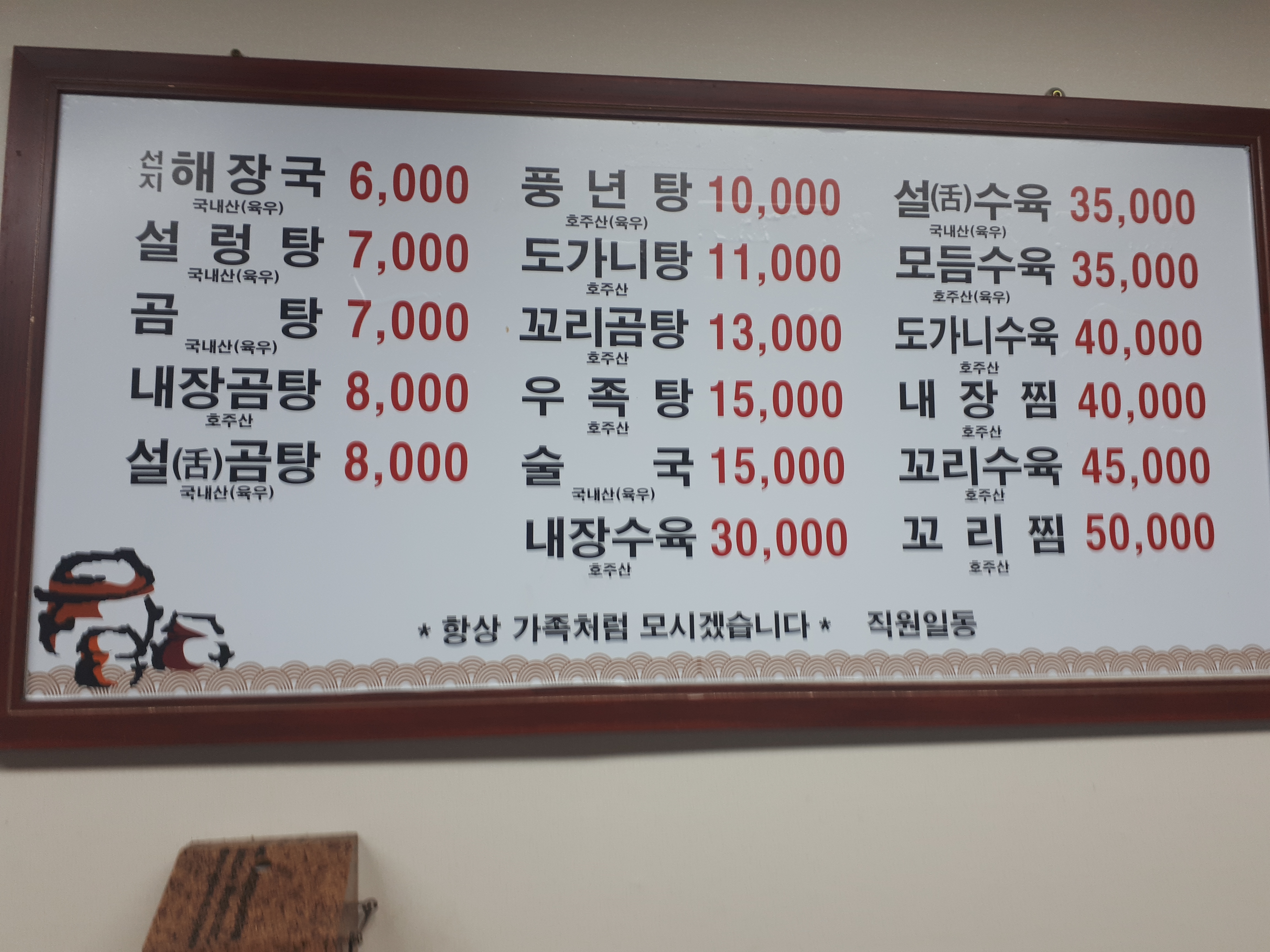 - 설렁탕 9,000원