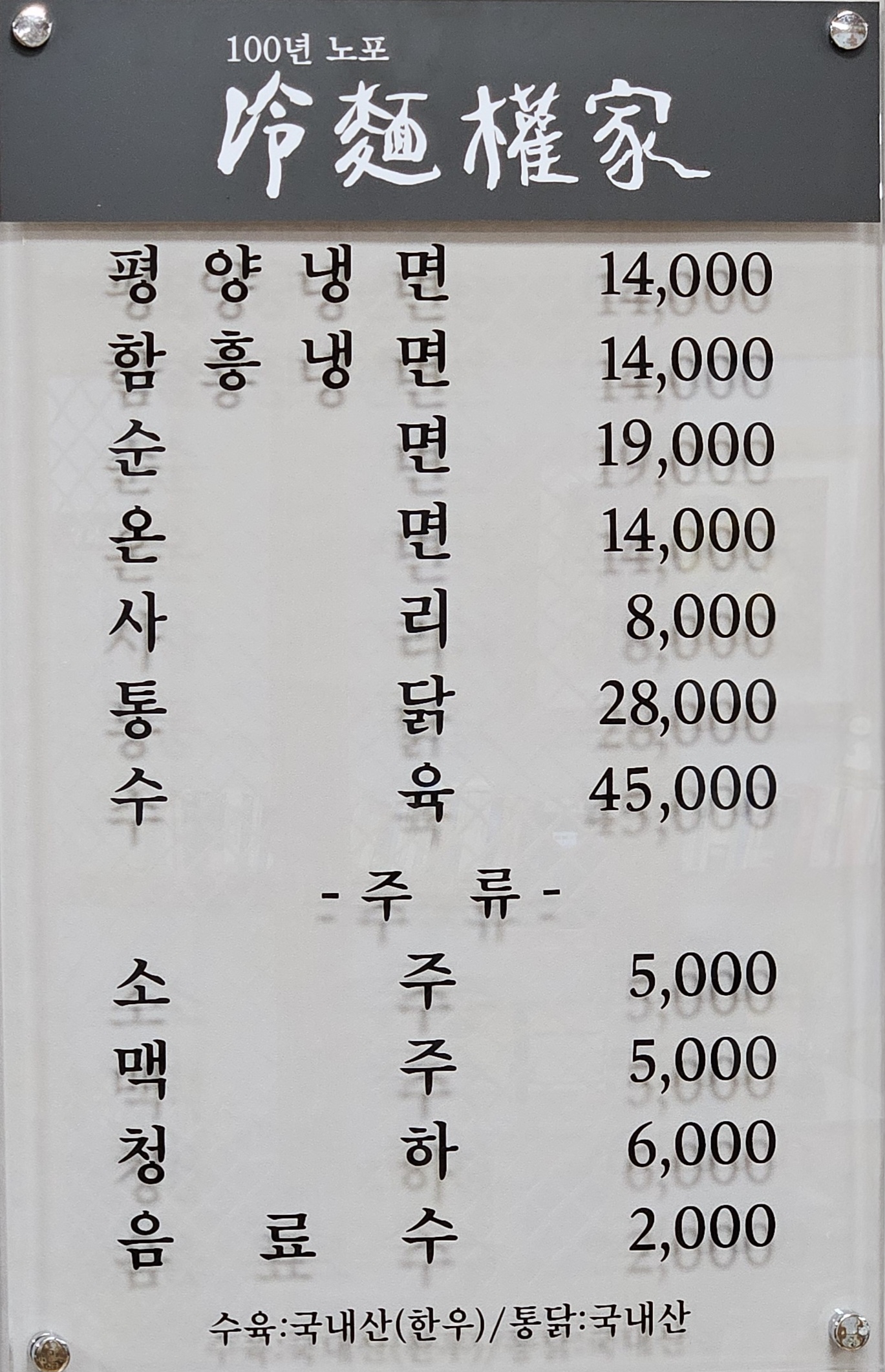 - 함흥물냉면 14,000원