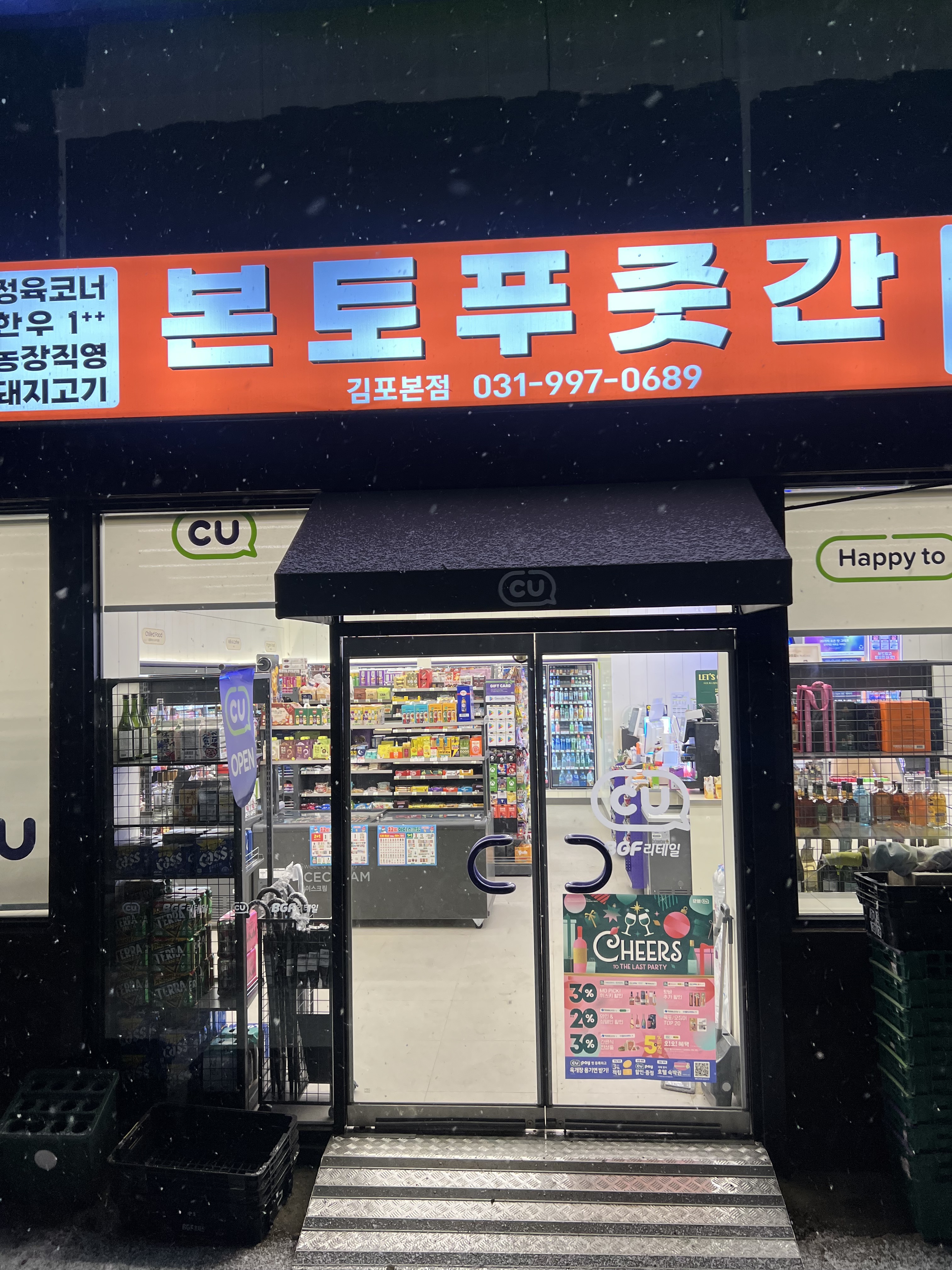 저희집 삼겹살 맛집이에요!! 오늘 삼겹살데이라 겹살이 먹으러와찌요💗 삼삼데이 이벤트도 하더라구요👍 저흰 삼겹살2팩먹었숩니닷~!! 고기질 너무좋고, 편의점도 같이하셔서 소주 편의점가로 사서 마셨숩니닷~!! 최고최고!!! 꼭 오세요💗💗💗💗💗