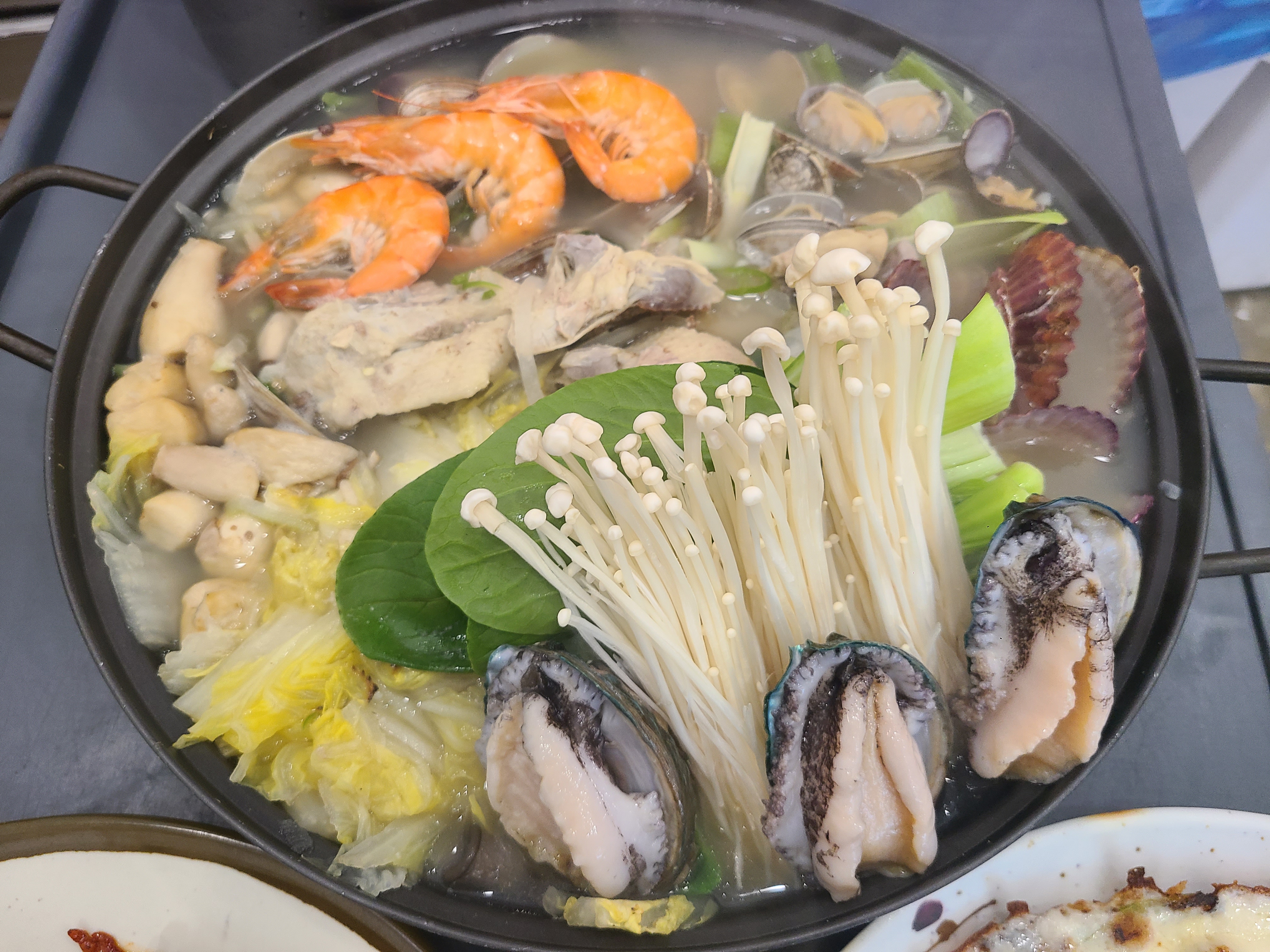 Food영종도 을왕리 근처에 있는 해물갈비 식당입니다. 전복, 낙지, 새우, 오징어 등이 들어있네요~ tv에도 나온 식당인데, 해물이 푸짐해요. 매운맛은 선택 가능하고, 점심때는 웨이팅 해야 해요