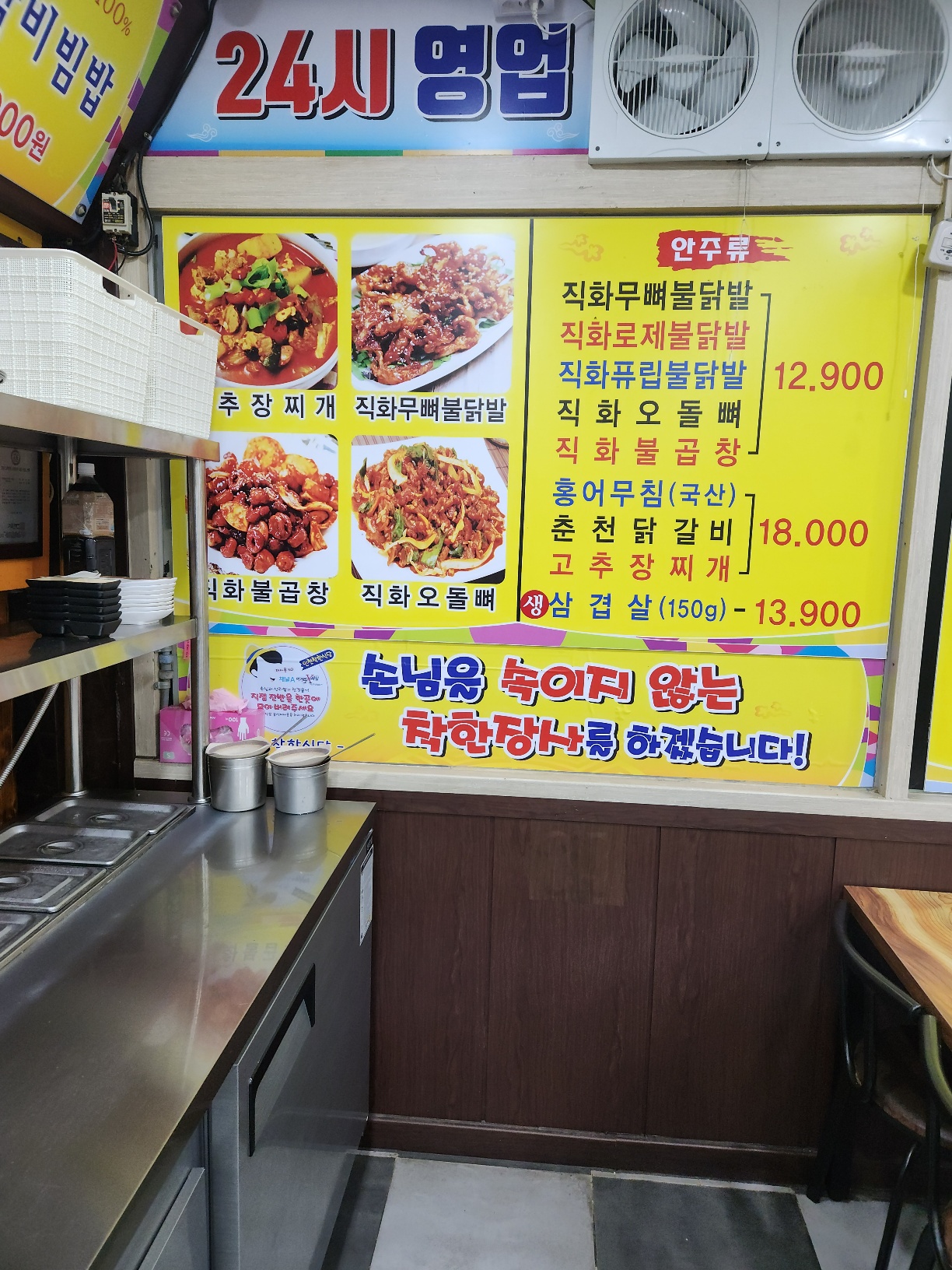 먹사남안녕하세요 먹사남입니다. 저는 새벽에 돌아다니는걸 좋아하지요 ㅎ 그래서 24시간이나 새벽에 영업하는 식당가는걸 좋아하는데요 인천가면 새벽에 밥한잔 하러 필히가는 인천 24시간 밥집 착한식당이랍니다. 이날도 인천간김에 새벽2시쯤되니 밥한잔에 목이 마르더라고요 그래서 어슬렁 거리며 나왔지요 뭔놈의 방송은 그리 씨게도 나와는지 아 진짜 부럽더라고요 ㅎㅎ 그분은 안동찜닭정식을 저는 뚝배기 꽃게탕 어차피 둘다 밥보다는 한잔에 중점을 뒀기에 안주 될만한걸로 주문햇지요 그리고 무엇보다 꽃게탕이 만천원이면 그냥 감사하잔아요 ㅎㅎ 방송에 많이 나온집이랑은 상관은 없겠다만서도 그래도 맛이 상당히 좋아요 반찬맛이 좋아서 인천가면 새벽에 찾게되는곳이랍니다. 사진으로는 이게 크기가 가늠안되는데 솔직히 꽃게탕은 완전 감동요 만천원에 저정도 사이즈 한마리면 국물달달시원한게 새벽에 속풀이겸 밥한잔하기에는 아주아주 그만이엇지요 ㅎㅎ 사이즈좋고 살집좋고 뜯어먹을게 많아서 좋더라고요 찜닭이라더니 갈비찜같은 맛이 나더라고요 ㅎ 항상 가면 생선구이는 추가주문하지요 이게 4천원이던가 조기3마리에 그럼 아주아주 사이드로 반찬겸 안주로 좋은거잔아요 ㅎㅎ 요건 그다음날 새벽에 가서 먹은 김치찌개랑 청국장 ㅎ 낮에 그렇게 술을 마시고도 ㅎㅎ 새벽에 또 마시러 나가는 참말로 잘마시지요 반찬으로 조기 함나리 나오길래 역시나 언제나 처럼 조기추가 주문했지요 가격좋으니 아주그냥 한입에 한마리씩 먹으니 으른이란 내가 먹고싶은거 마음껏 먹는거 아닌가 ㅎㅎ 이상 새벽에 가면 너무너무 맛있는 인천 24시간 밥집 착한식당이었답니다.