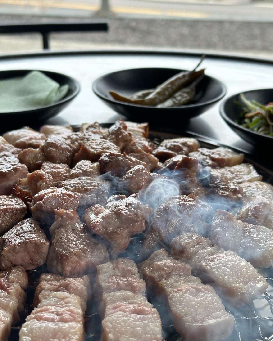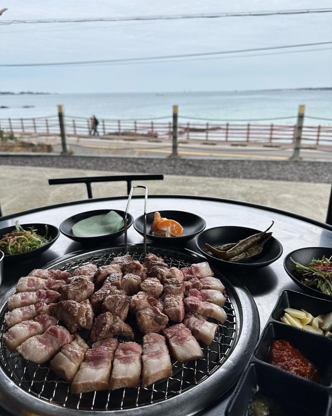 밍딩성산 근처로 흑돼지 맛집 찾아서 왔는데 !! 기대이상으로 너무 맛있게 잘 먹었어요 ! 흑돼지라 고소하면서도 비계부분이 쫀득하더라구요 양도 2명이서 먹기 딱 좋아요ㅎㅎ 반찬구성도 좋구 셀프바 있어서 갖다먹기 편해요 ! 2층에 카페도 있어서 고기먹고 바다뷰 보면서 차 한잔 하기 좋아요ㅎㅎ 바다뷰랑 흑돼지 둘 다