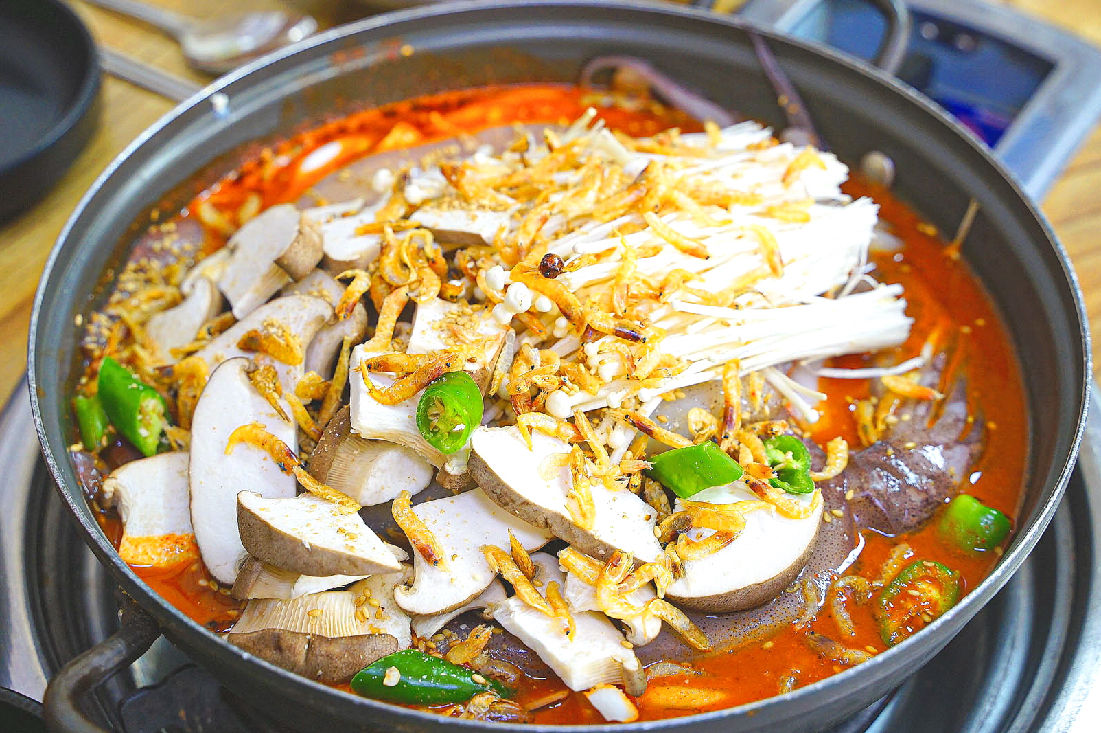나니충주 짜글이 터줏골명가 김치짜글이 짜글이맛집 블챌을 하며 사진첩에 저장된 글을 포스팅할수 있어 좋다 여기는 호불호가 좀 있을수도 있는 충주 맛집 중 하나~~ 터줏골명가 우리아이가 좋아하는곳이라 우리딸은 2주내내 먹기도한다;;; 꺄~~ 비쥬얼은 너무 좋아서 짜글이 사진 먼저 ~~~ 메뉴는 이러하다 수없이 갔는데도 갈비찜은 아직 못먹어봄ㅎㅎ 손님이 있어 내부사진은 여기까지~~~ 주방쪽 사진 한장 찍어봤다 밑반찬이 나오고~~~ 짜글이까지 나오면 한상차림 완성~~ 이날은 떡갈비도 한장 추가했다~~ 보글보글 버섯과 두부 익힐만큼 조금만끓여주면 완성~~ 떡갈비도 너무 맛있다며 잘먹는다~~ 참! 라면사리도 있다 짜글이 먼저 먹고 나중에 먹는거라고 설명해주신다 라면사리 시키면 육수랑 같이 주심~~ 호불호가 있다고 얘기한건 개인적으로 묵은지가 새콤?시큼? 한 맛이라서 묵은지 좋아하는 우리 아이는 너무나도 좋아하는곳이고 나는 어쩔땐 소소하게 느껴지기도 했다.. 이렇게 먹으면 맛있는 한끼완성~~~ 포장도 가능해서 포장도 자주 사다 먹는곳~~ 물론 우리 아이가 자주 먹는다~~ 시청근처에 있음 갈때마다 늘 외관사진은 안찍음ㅜㅜ 역시 집보단 식당가서 먹는게 좋아