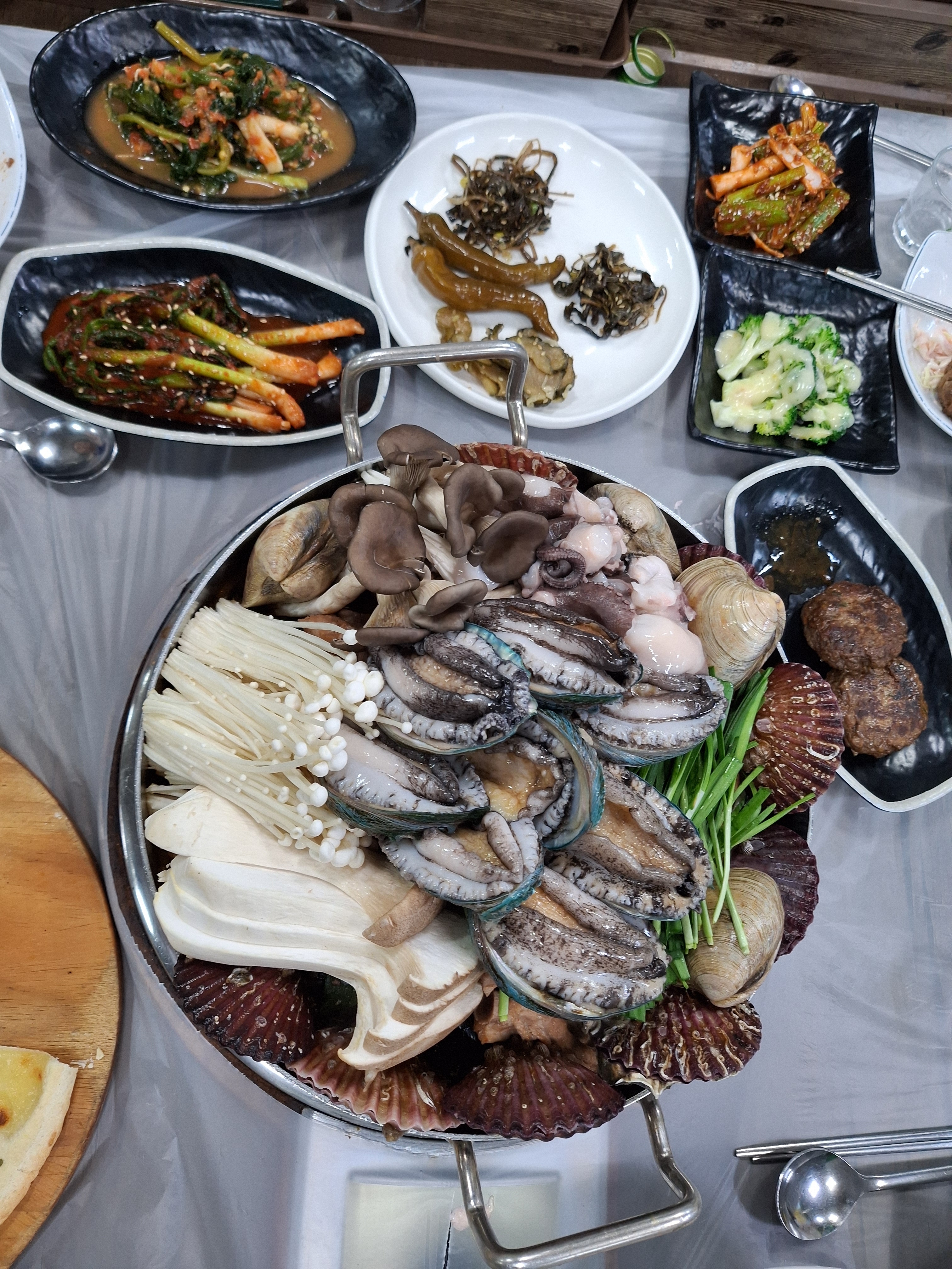HelenaVan진짜진짜진짜 맛있는 맛집입니다 버섯해물갈비찜 소짜인데 해물 정말 가득 버섯 가득 등갈비 가득입니다. 등갈비만해도 어마어마해요 진짜 부모님 모시고 다시 오고싶어요 샐러드랑 피자도 반찬으로 나오고 떡갈비도 맛있어요 양이 많아서 남기는게 아까울 정도인데 제 배가 이정도 밖에 안되는게 아쉬울 정도입니당