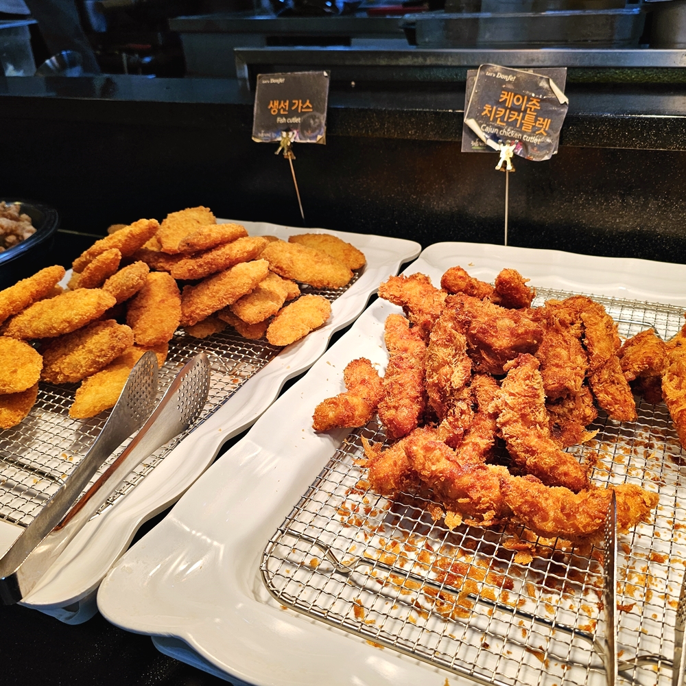 비머금11시 30분 오픈이어서 40분에 들어갔는데 벌써 손님이 있었다. 그 뒤로 계속 들어 와 인기 있는집임을 느꼈다. 전체적으로 음식 종류도 많고 맛도 있었다. 돈까스 무한 리필이니 튀김류가 궁금했는데 튀김류 모두 잘 튀겨서 맛있게 먹었다. 가성비가 좋은집이다.