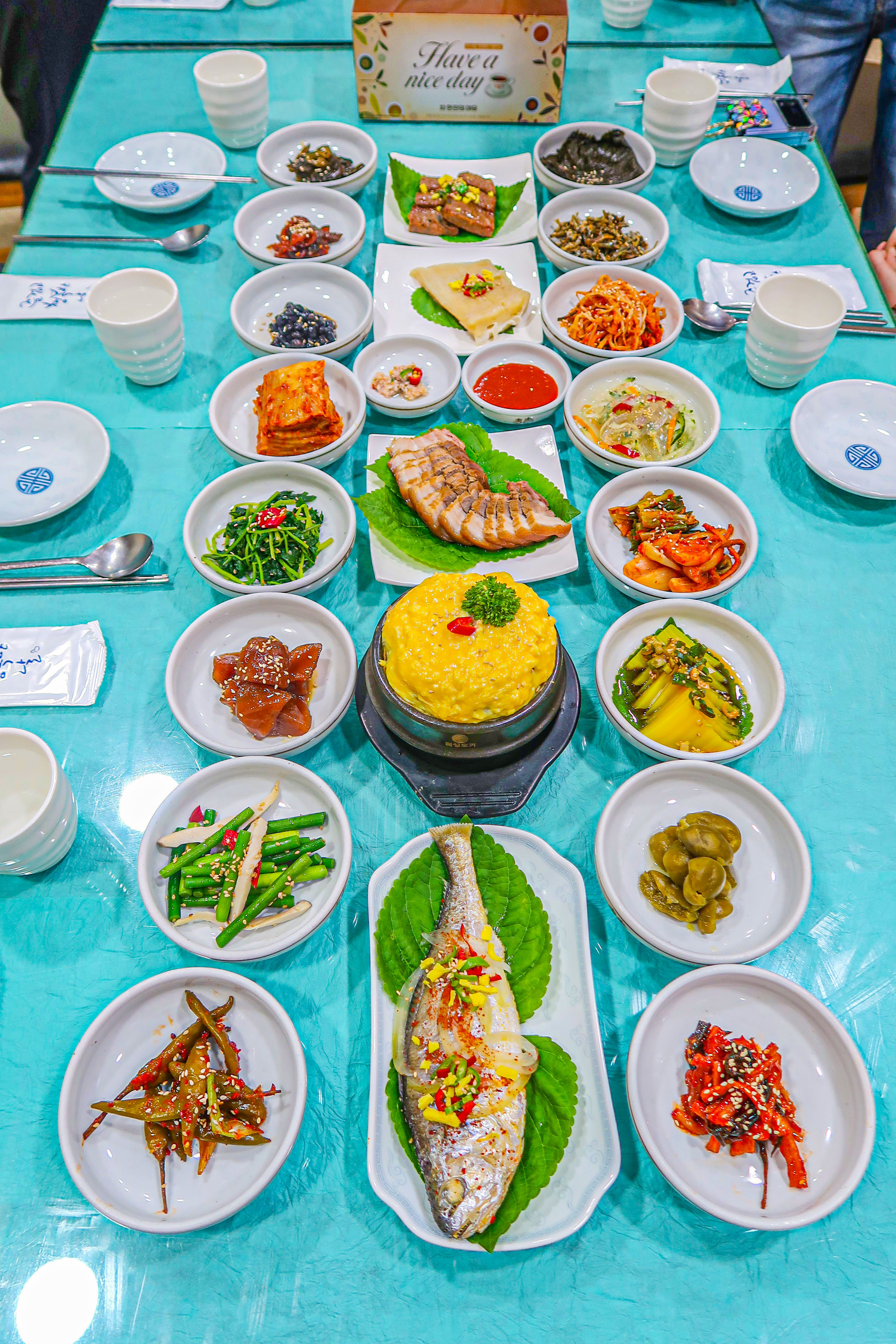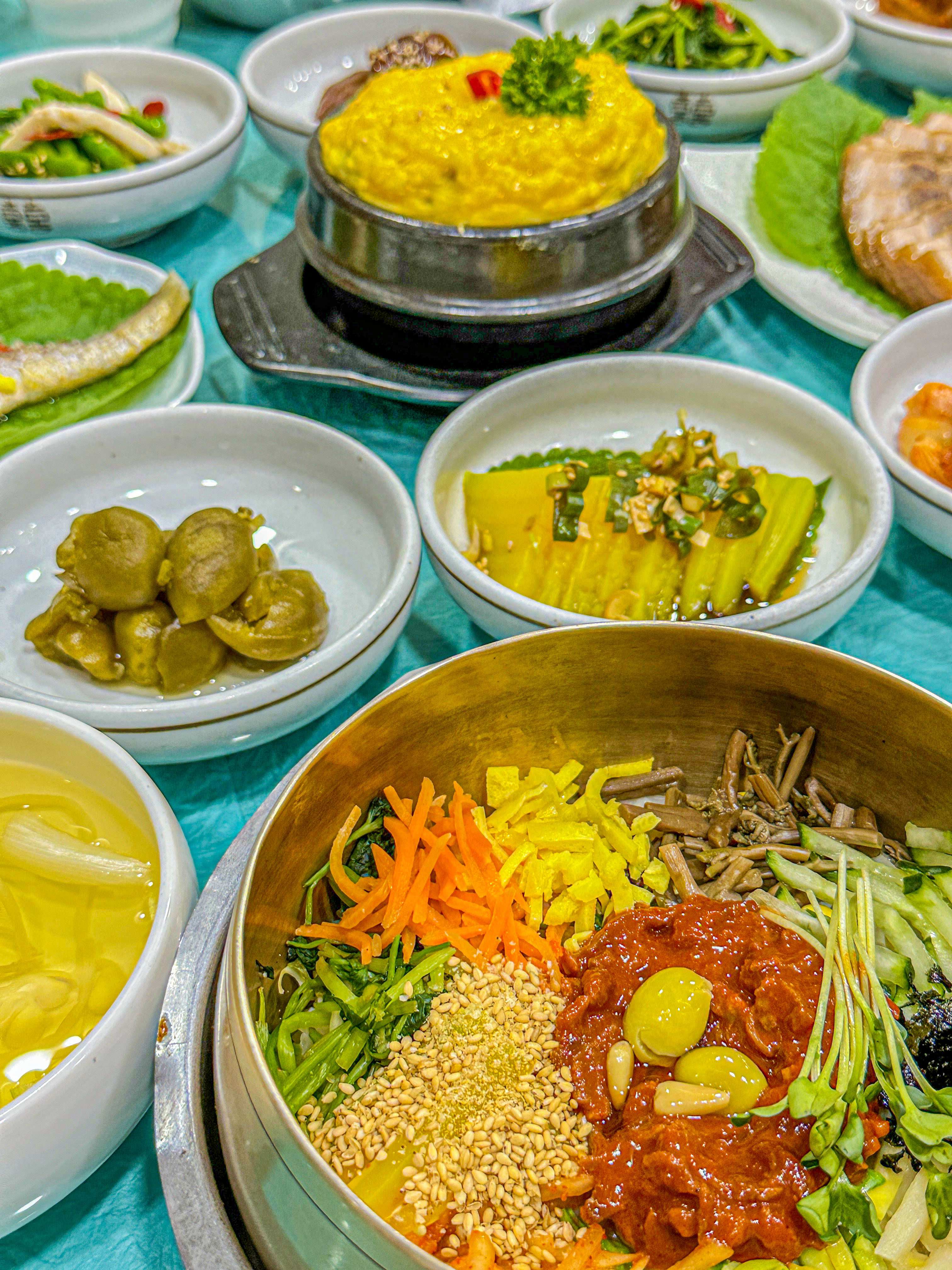 육회비빔밥이랑 전주비빔밥 하나씩 먹었어요. 비빔밥은 만있었는데, 육회비빔밥 더주고 사먹기에는 굳이... 할 정도긴해요. 그냥 전주비빔밥이 맛있었어요. 음식이 맛있긴하지만 재방문 할 것 같진않아요... 30분 넘게 대기하고 앉아서 밥 나오는데 20분 넘게 걸렸는데, 끝까지 콩나물국은 나오지도 않았어요. 기분좋게 여행왔으니까 그냥 넘어가긴했는데, 음식나오는 속도가 너무 느려요. 계란찜 다먹을 때 비빔밥나오고, 비빔밥 다 먹어서도 콩나물국은 안나오고... 어르신들만 일해서 어쩔수 없어보이긴한데, 젊은사람 좀 필요한것같아요....