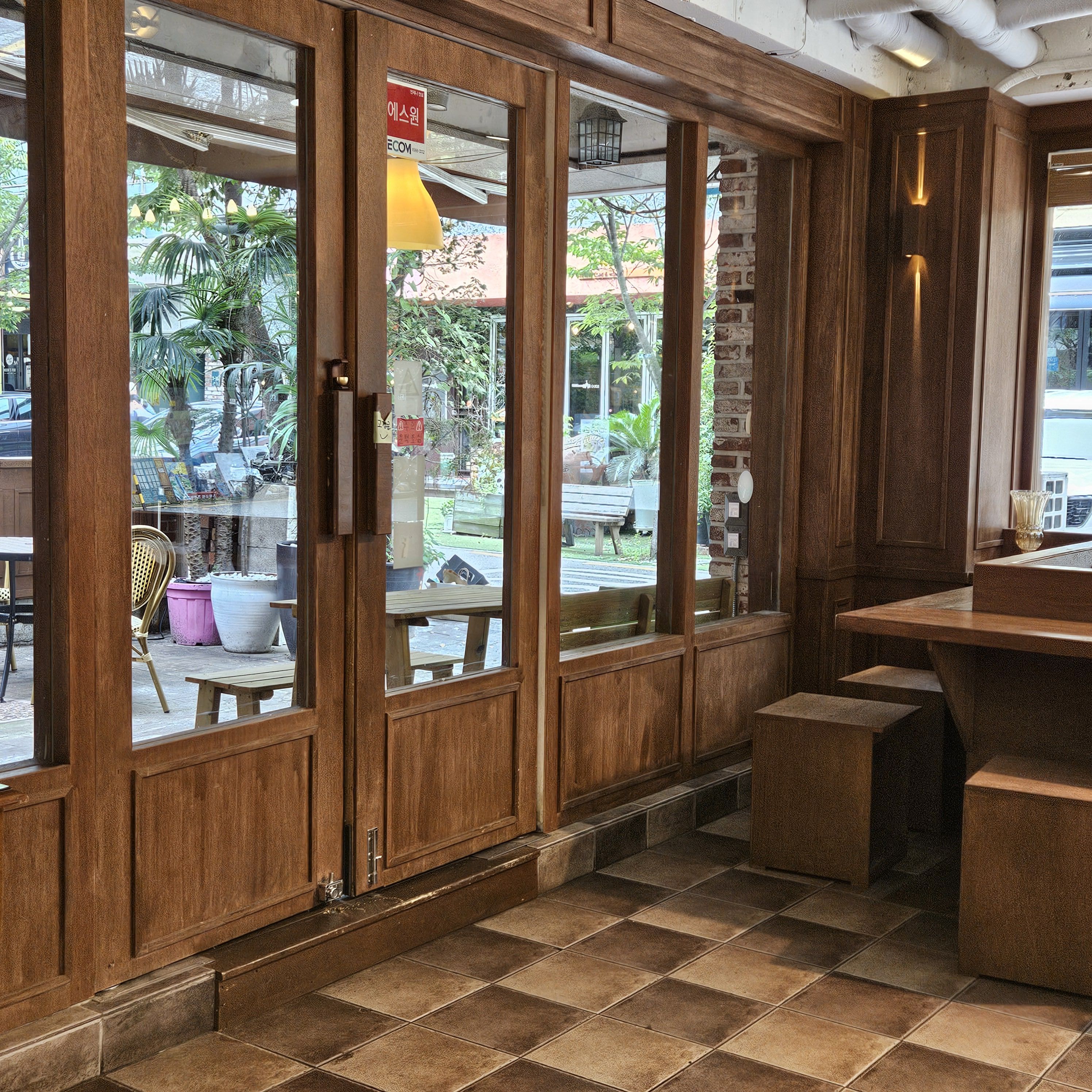 퍼플퍼플어쩌다 예쁘고 빵종류도 많아보여서 들어갔는데....ㅎㅎ나와서보니 유명한곳이었드라구요~ 사람도 많고 빵종류도 많고 시식도 많던... 일행이 많아서 커피랑 빵사들고 바깥 커피마시는 자리로 후딱 나옵니다^^ 먹기편하게 썰어주신 빵들~ 여기빵도 마카롱도..먹는거마다 다 맛있어요~ 커피는 조금만 진하면 더 맛있을^^ 특히 치아바타~ 겉에 가루는 살짝 별로다싶었는데 입에 넣는순간 폭신폭신쫄깃~완전 맛있어요 제가 먹어본 치아바타중 최고로 맛있다해도 될...^^ 빵집옆 야외 커피마시는 자리예요~~내부만큼이나 아기자기 예뻤어요~ 집에 애들주려고 마카롱한통사고~~나오면서 한번 더 찍은 예쁜 창문^^ 사온 마카롱이랑 초코크로와상~ 전부다 넘넘 맛있었어요~