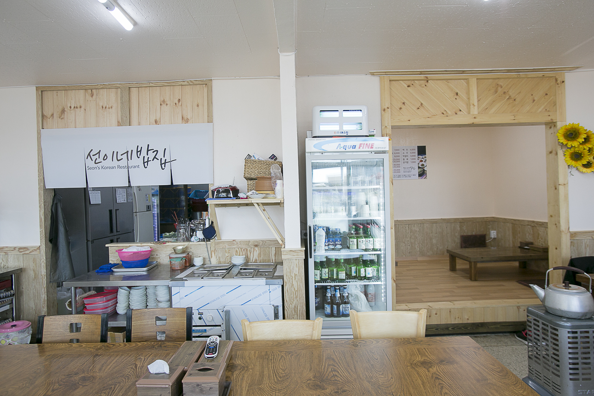 바람8260주방에서 음식 준비하시는 어르신이 선이씨인듯... 테이블에 붙어있는 메뉴판에는 모든메뉴 2인분부터라고 되어 있는데 정식은 1인분부터라고 하심 만원상인데 계란후라이에 제육볶음 제대로된 갈치 한토막까지 올라간... 된장찌개도 우렁도 들어간 보기엔 짜보이는데 전혀~ 아침부터 30키로를 달려갔지만 보상이 되는 기분좋은 밥상이였다는...